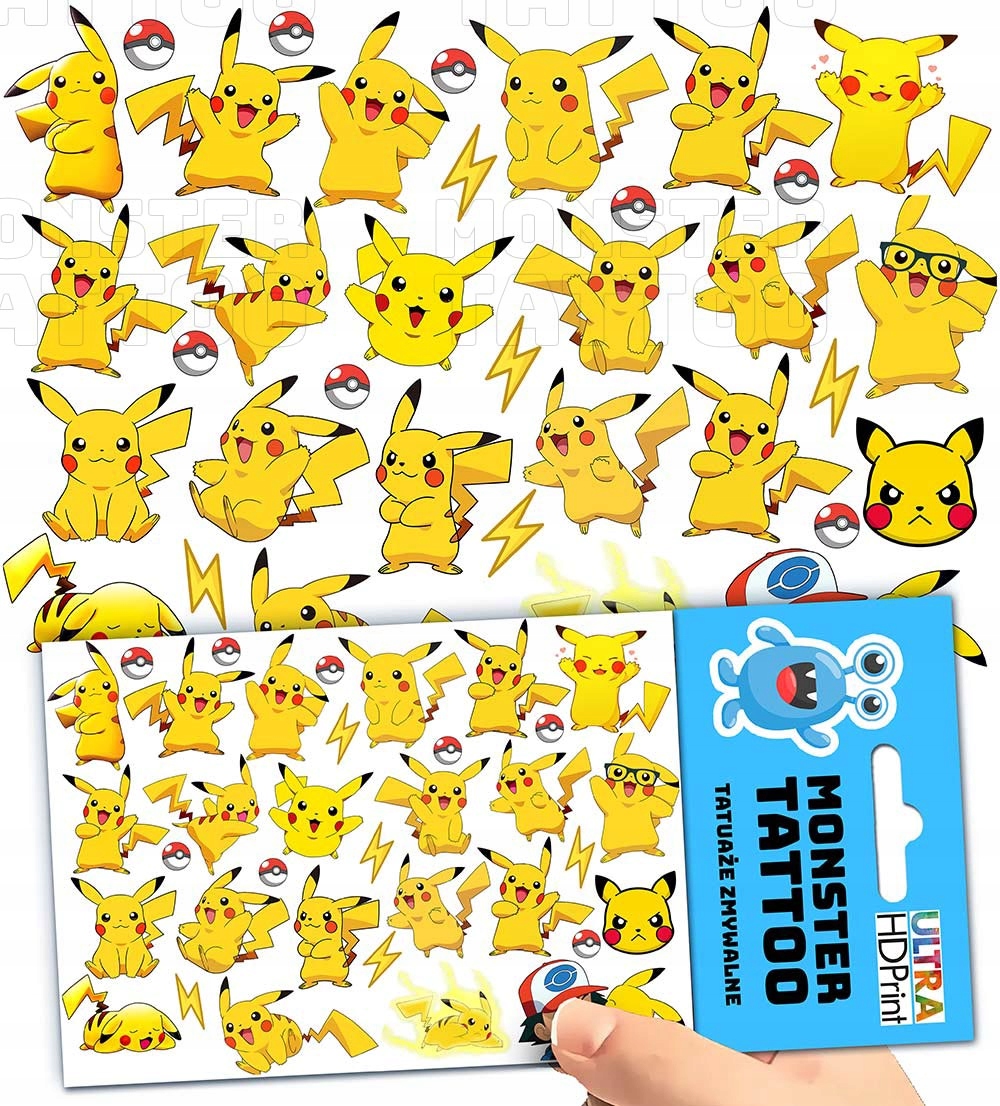 TATUAŻE ZMYWALNE TYMCZASOWE DLA DZIECI DZIECIĘCE PIKACHU WZORY ORYGINALNE