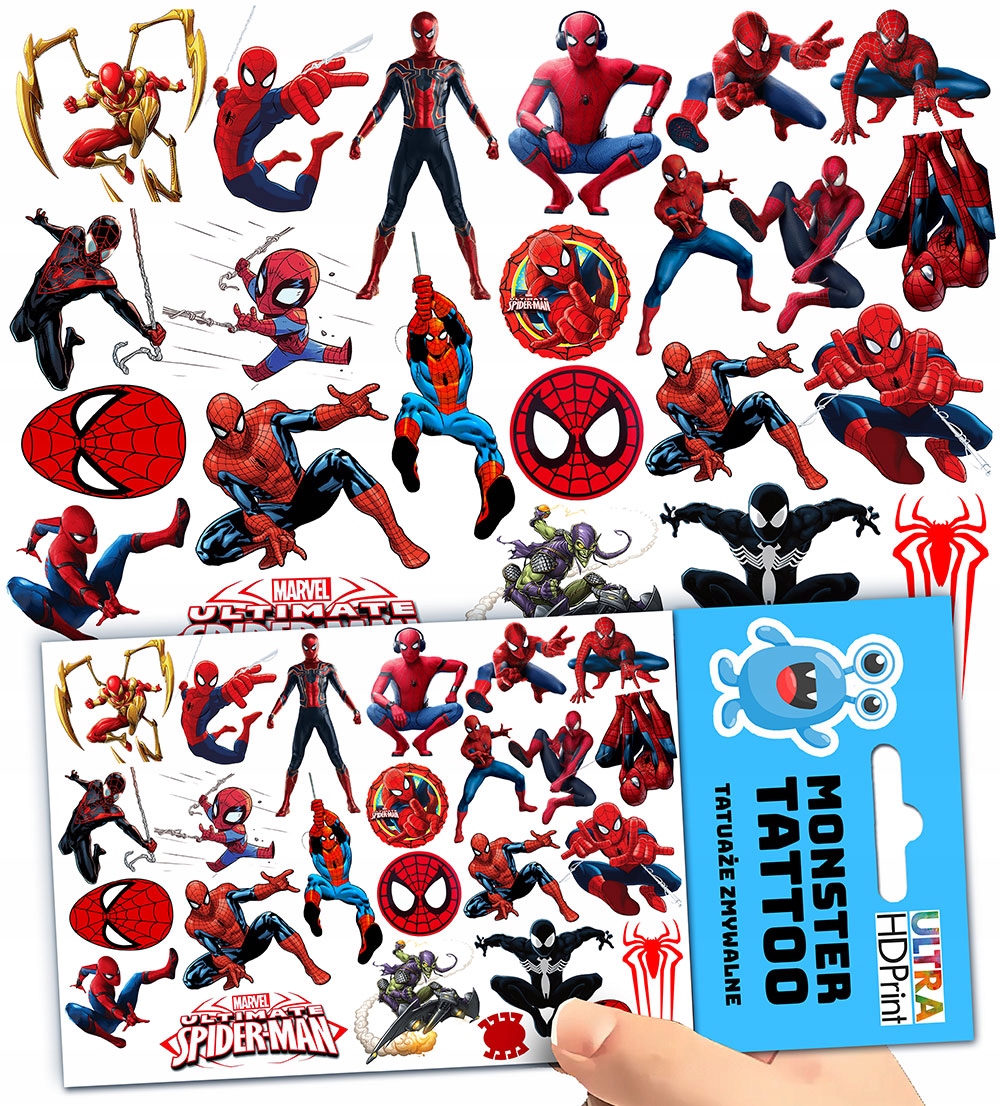 НАБОР ДЕТСКИХ ВРЕМЕННЫХ ТАТУ ВРЕМЕННЫХ УЗОРОВ ЧЕЛОВЕКА-ПАУКА КАЧЕСТВЕННЫЙ