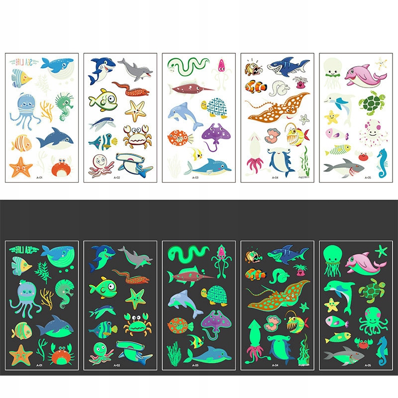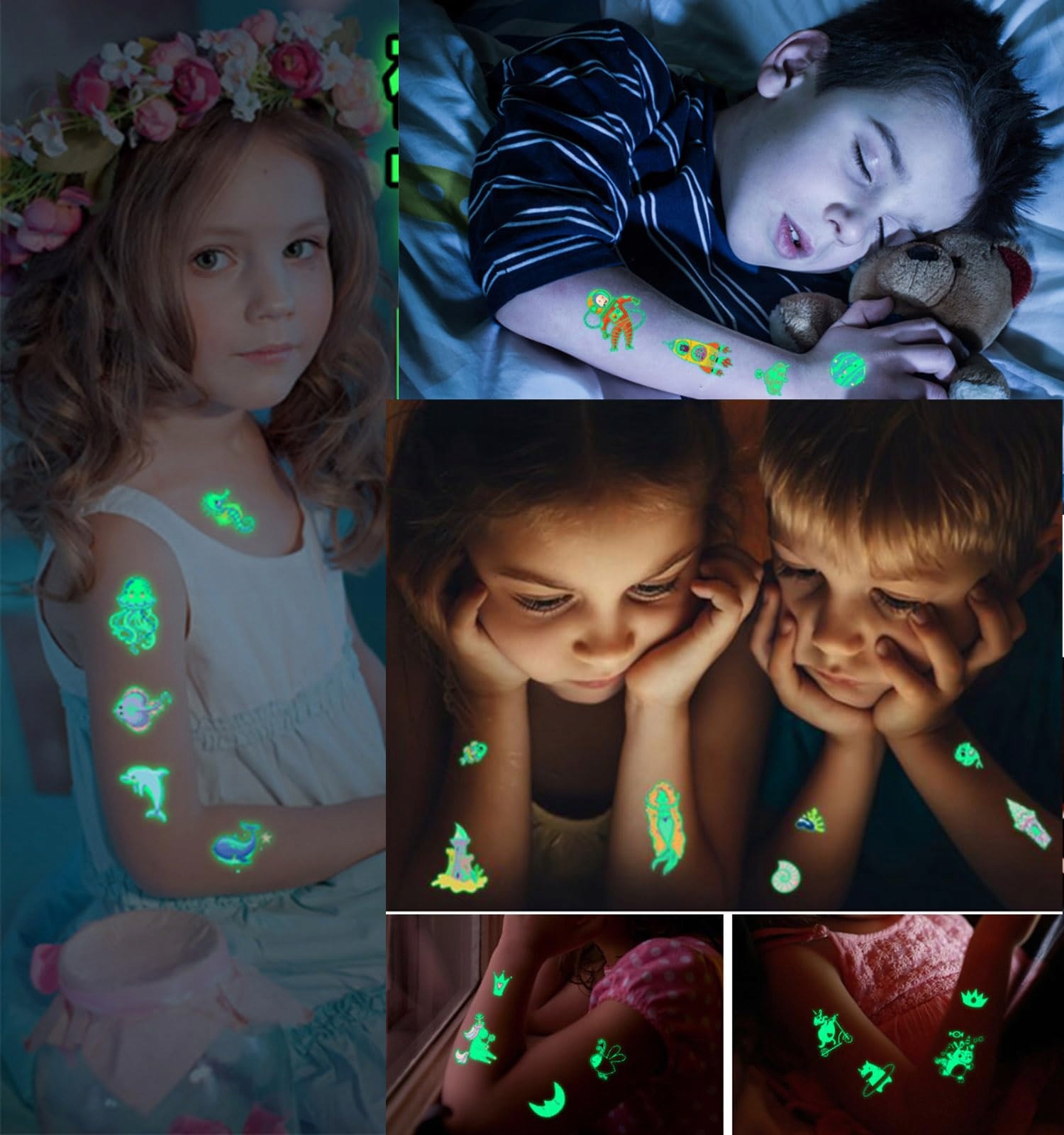 Татуировки для детей светятся в темноте 30 листов ~ 400 шт.