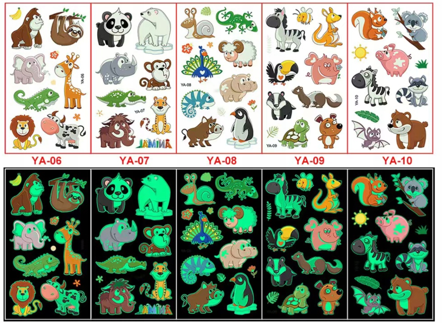 Татуировки для детей 5 ПК, светящихся в темноте.