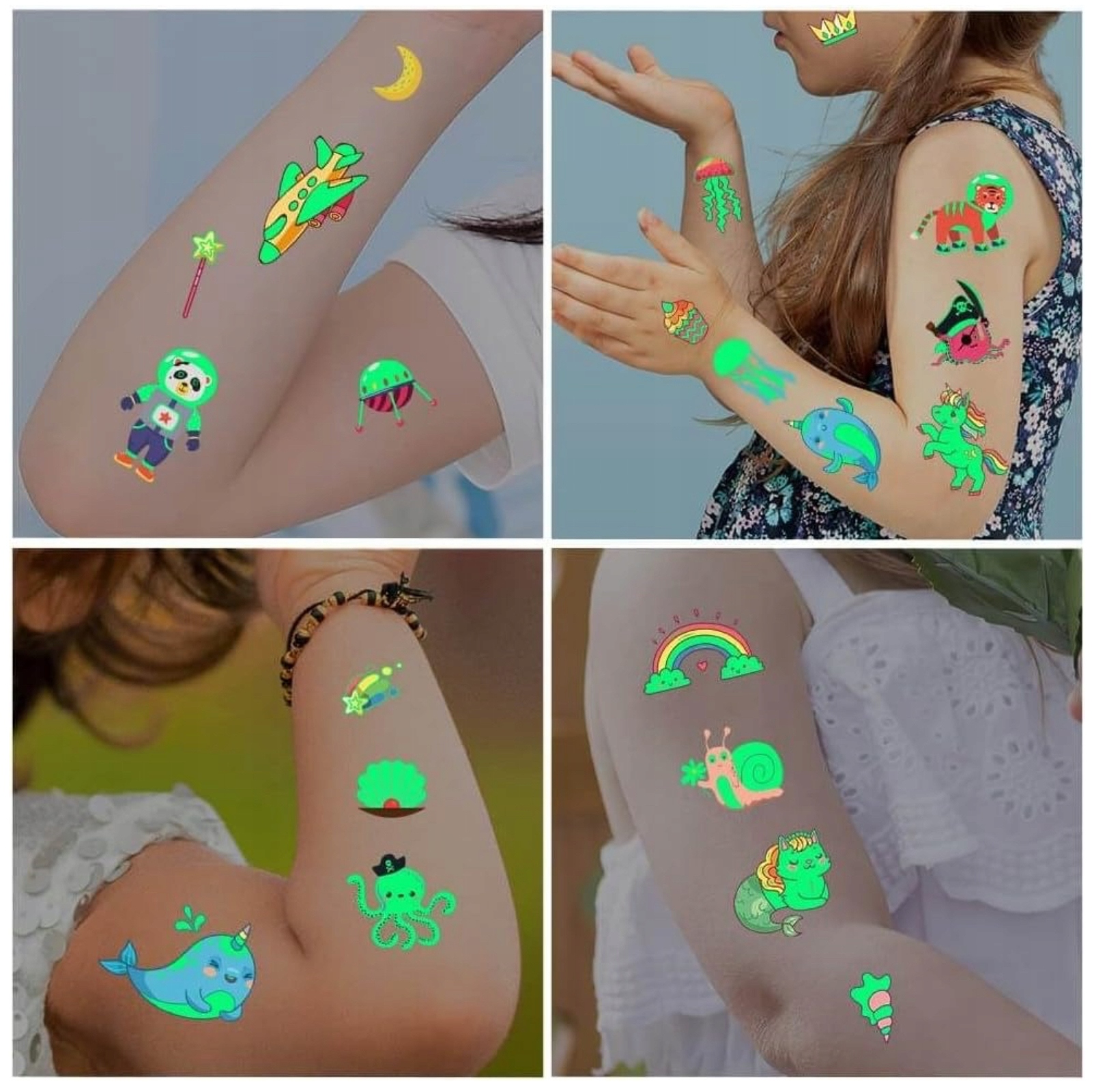 дайте своим детям возможность переехать в мир магии с нашими моютми татуировками, которые сияют в темноте! И смешно, но также и безопасно для нежной детской кожи . Изготовленные из не -токсичных материалов, легко нанести и промыть , что делает их идеальным дополнением к вечеринкам, праздникам или ежедневным развлечениям. ваших детей!