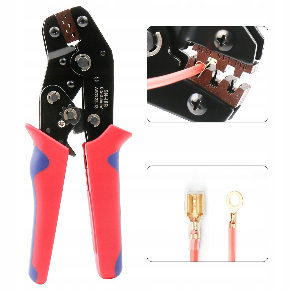 изготовлена из высокоуглеродной стали и изолированной резины tpu b>, и конструкция механизма храпового механизма помогает уменьшить прочность, необходимую для хорошо сжима. Диапазон зажима составляет AWG22-16, 0,5-1,5 мм², подходит для 2,8 мм, 4,8 мм, 6,3 мм и шариковых разъемов и 3,5 мм шариковых разъемов, 4,0 мм.