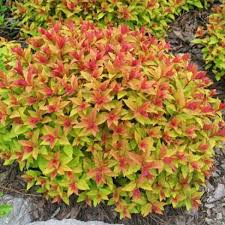 Карликовый густой кустарник с золотистыми листьями и розовыми цветками. Полукруглая форма. Вырастает до 0,8 м в высоту и 1 м в ширину. Листья все лето золотисто-желтые, позднее зеленовато-желтые, эллиптические, остроконечные, по краям зубчатые. Молодые приросты медно-оранжевые. Листья на верхушках побегов сохраняют такую окраску на протяжении всего вегетационного периода. Цветки розово-сиреневые, мелкие, около 5 мм, собраны в плоские соцветия на концах побегов этого года. Цветет в июне-июле. Кустарник средней требовательности к почве, устойчивый к морозам, засухе и городским условиям.