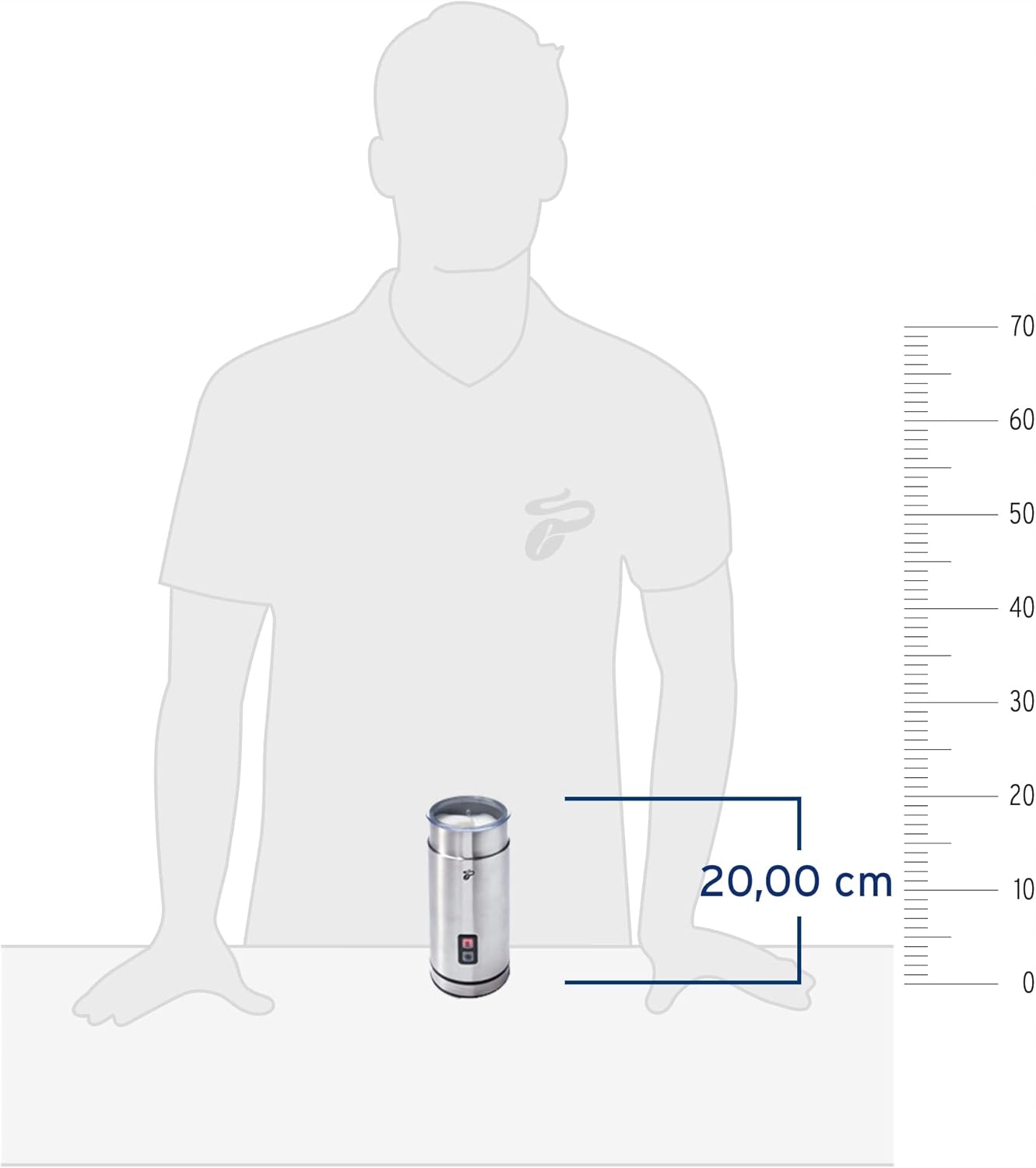 Эта элегантная пеняная тчибо приготовит сливочную пену для капучино, латте маккиато или какао за несколько секунд - только одна нажатие кнопки. Выбор между отоплением и холодной пеной был отмечен цветными лампами - красным для теплого, синего для холодной пены.