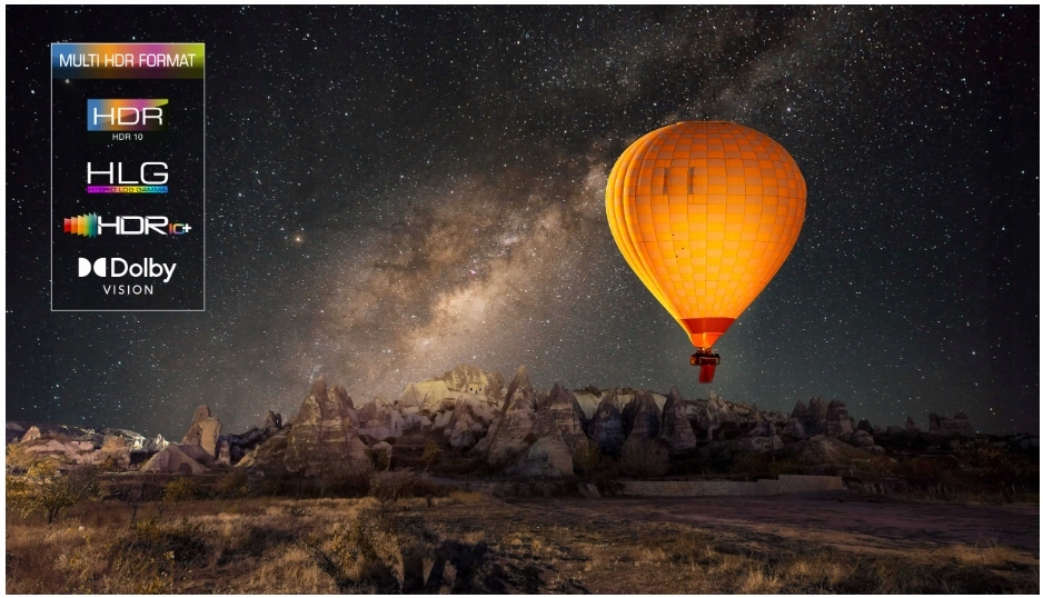 4K HDR Pro 600 в сочетании с квантовой точкой и полной массией локальной технологии замолки (HDR), предлагая верные Цвета, самые маленькие детали и яркости до 600 нит