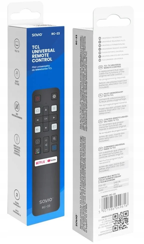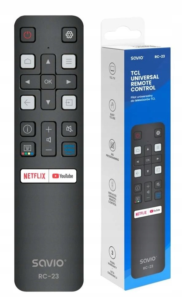 Многофункциональный универсальный пульт дистанционного управления для TCL TV b>. Это замена замены бренда (производитель Savio), которая успешно заменяет исходный пульт дистанционного управления . Он воспроизводит исходные пилотные функции, расположение и расстояние между кнопками совпадают с исходным пультом дистанционного управления. не требует программирования , просто надевайте батареи, и он готов к использованию.