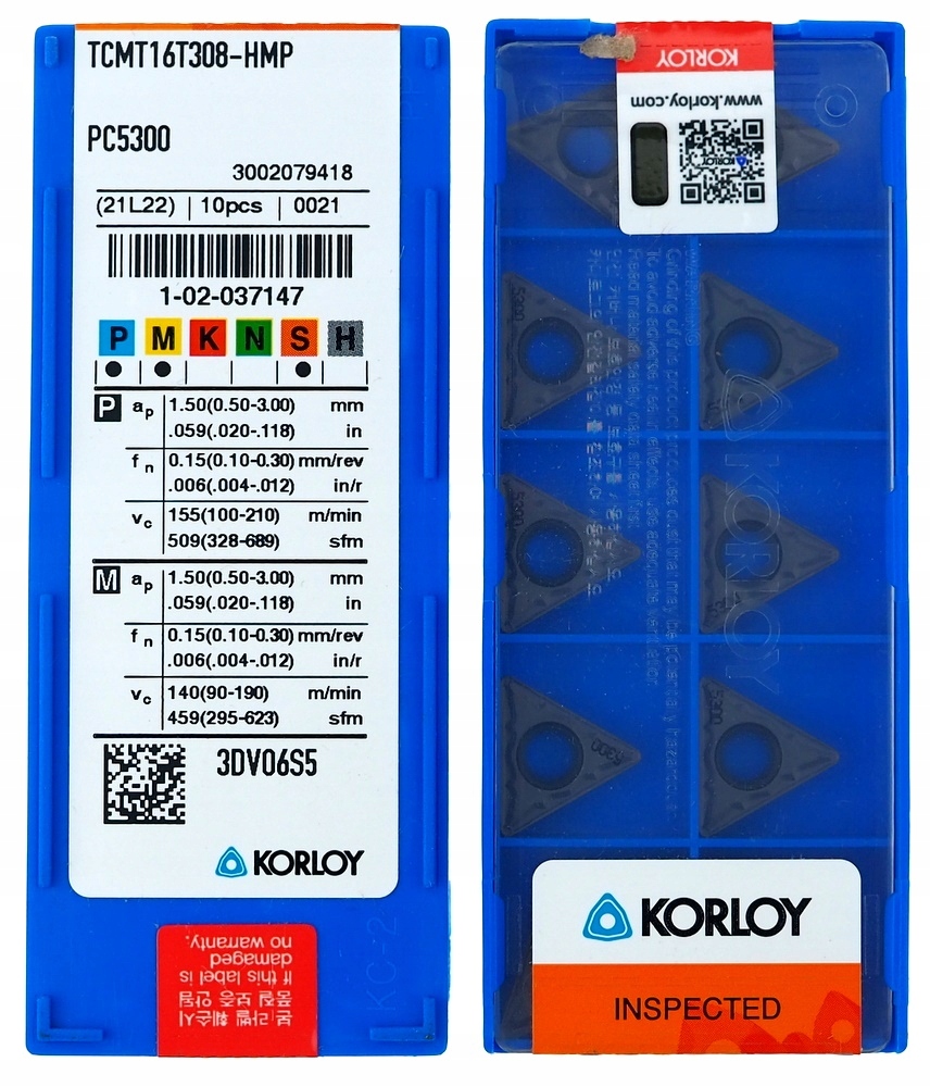 TCMT Carbide Tiles 16T308 HMP PC5300 Korloy