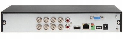 Стандарт: AHD, HD-CVI, HD-TVI, CVBS, TCP/IP Видеовходы: 8 шт. BNC Видеовыходы: 1 шт. HDMI 1 шт. VGA Аудиовходы: 1 шт. CINCH, 8 шт. BNC Коаксиальный звук — поддержка звука через коаксиальный кабель Аудиовыходы : 1 шт. CINCH Способ сжатия изображения: AI Coding / H.265+ / H.265 / H.264+ / H.264 Сохраняемые разрешения изображения: AHD / HD-CVI / HD -TVI :