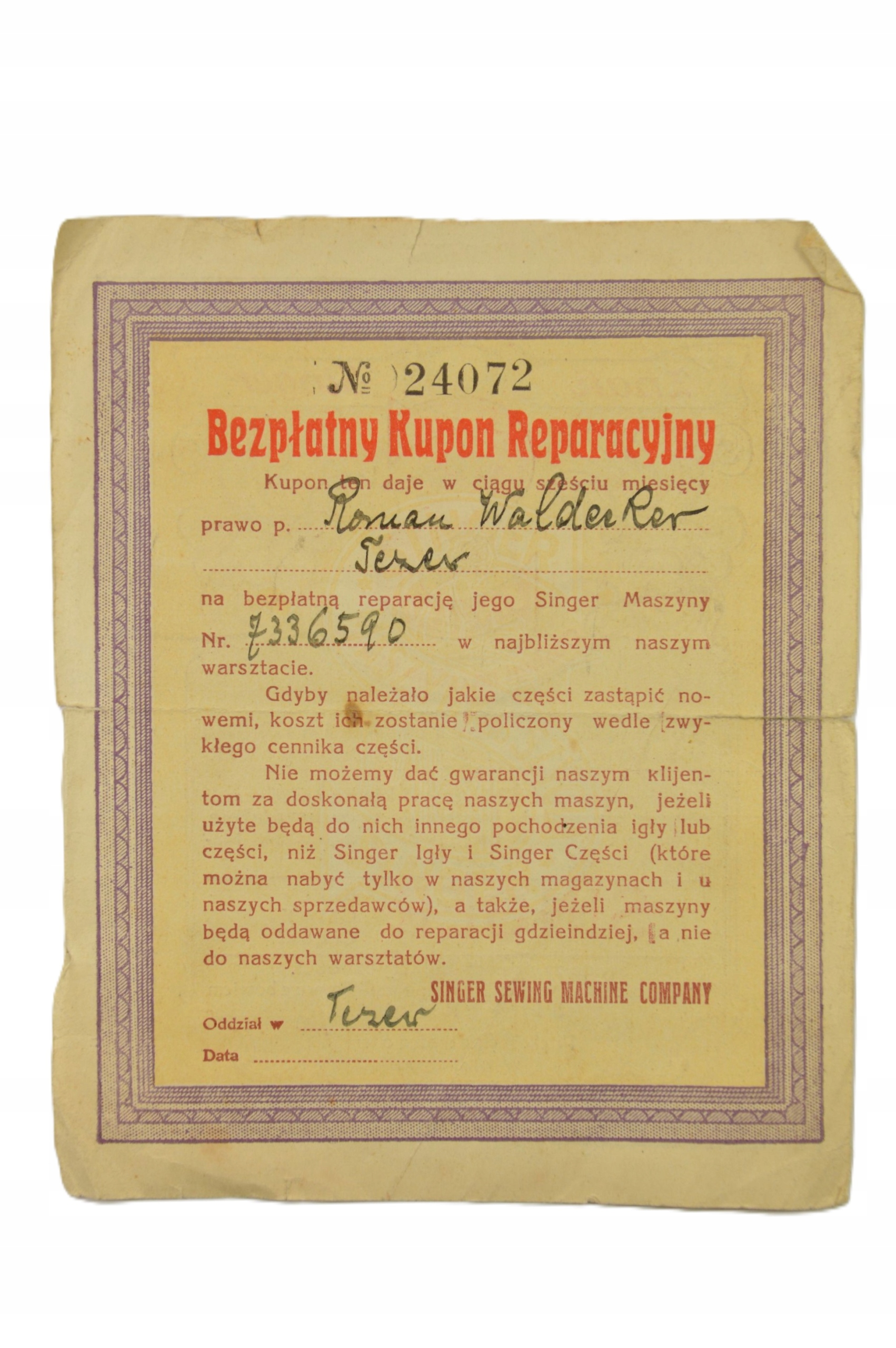 Покупая «TCZEW LATA 30-ste KUPON REPARACYJNY SINGER MASZYNA DO SZYCIA» данный товар из каталога «Счета-фактуры и счета» вы можете быть уверены, что после оформления заказа, доставки в Украину, вы получите именно то, что заказывали, в оговоренные сроки и европейского качества.