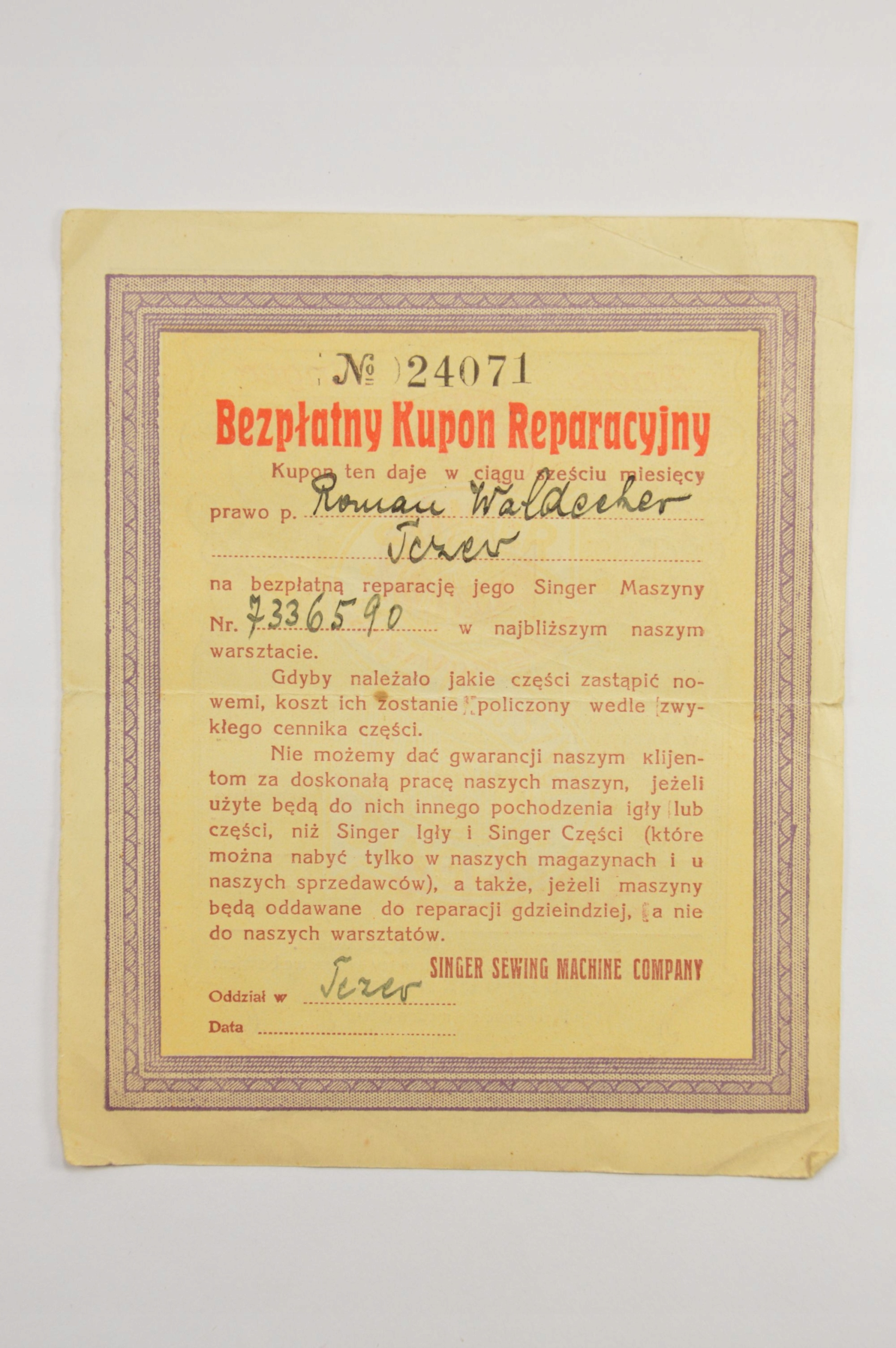 TCZEW MACHINE SINGER 1931 ГОДА, КОНТРАКТ НА ПОКУПКУ, ВАУЧЕР НА РЕПАРАЦИЮ, РЕДКАЯ