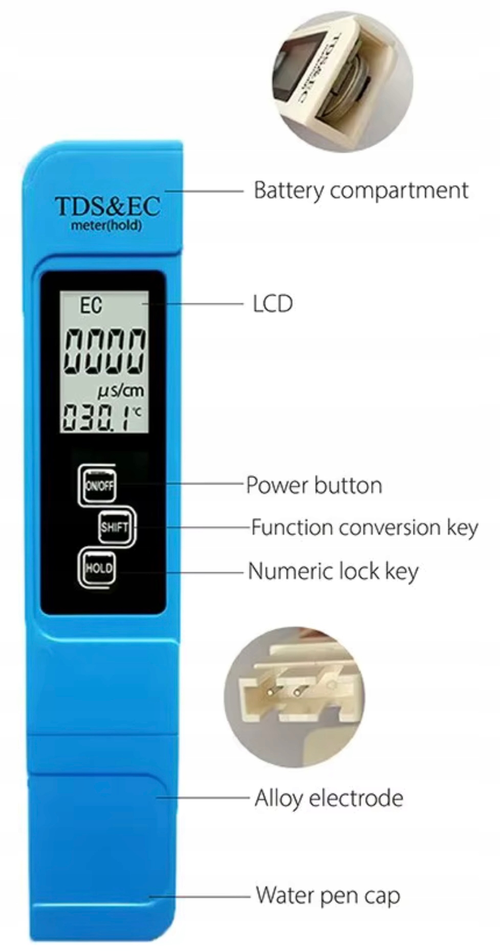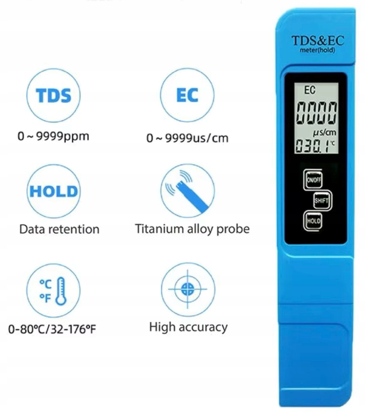 - TDS: 0–9990 ppm