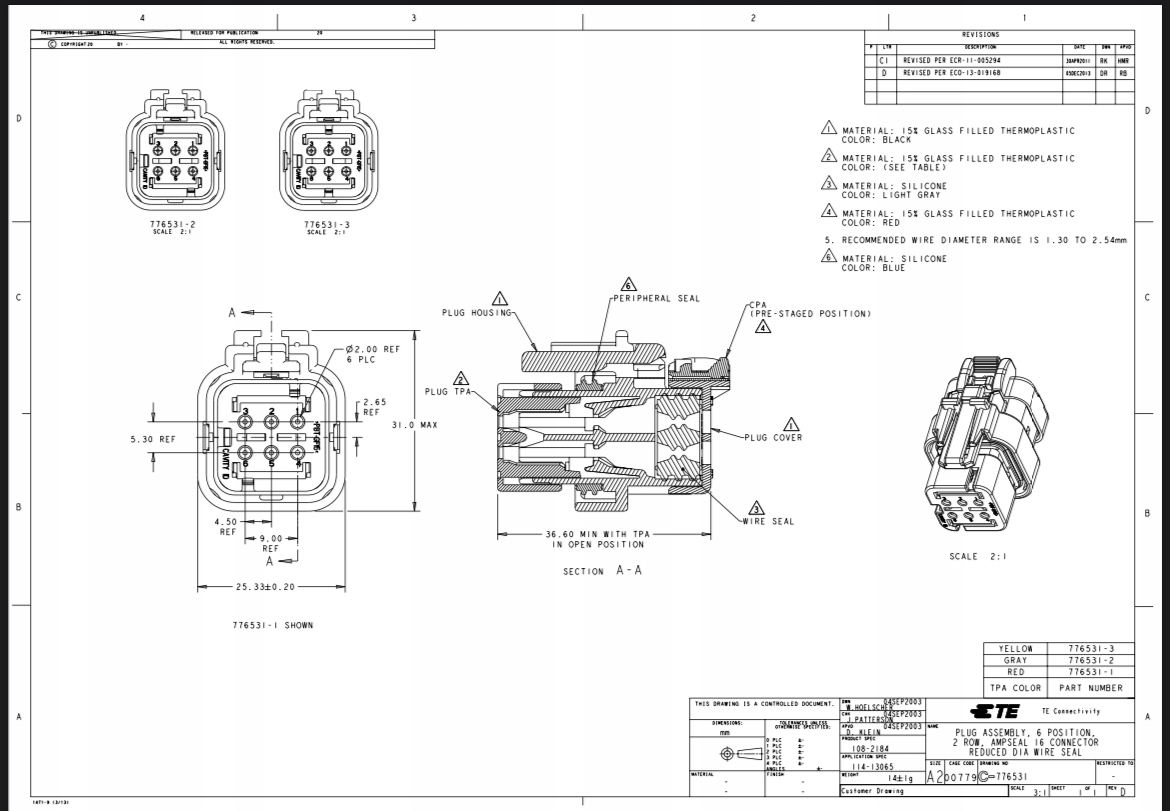 TE Connectivity, 776531-3 автомобільний роз'єм 6 шт