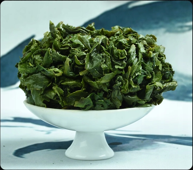 Скатаны в характерные шарики, что характерно для чая Те Гуань Инь (один из видов улуна).