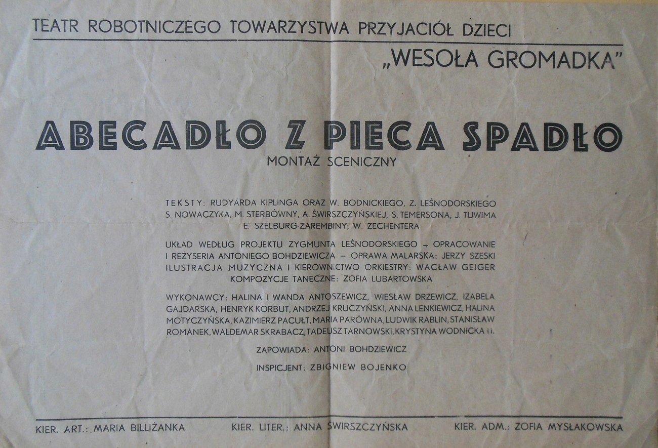Я должен продать программу рабочего театрального общества детских друзей t. Алфавит из духовки упал