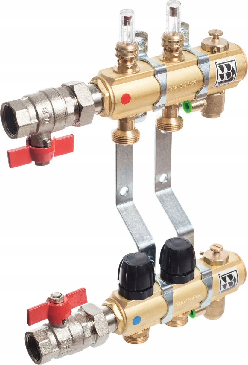 ✔️распределительная балка со встроенными терморегулирующими клапанными вставками для установки термоэлектрических приводов