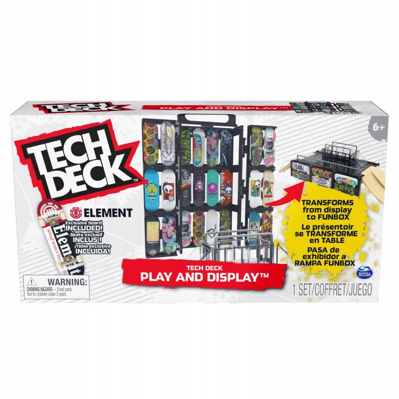 Поднимитесь в воздух с Tech Deck — потрясающими грифами с аутентичной графикой от настоящих скейтбордистов! Коробка для игр и демонстрации — идеальный способ хранения вашей коллекции мини-скейтбордов. Если вам захочется покататься, ящик превратится в пандус, на котором вы сможете изучать и практиковать новые трюки. Он вмещает до 24 грифов (каждая продается отдельно) и позволяет брать их с собой куда угодно. Даже если вы не будете перемещать доски, вы можете превратить пакет в пандус и играть на рельсах. Катайтесь по рампе на эксклюзивном скейтборде Element, входящем в комплект поставки. Наборы Fingerboard Tech Deck и Ramp Kit предназначены для детей и любителей скейтбординга от 6 лет и старше. Если вам нужна настоящая графика для скейтбордов от настоящих скейтбордных компаний, вам подойдет Tech Deck. Начните с маленьких досок, переходите к большим и соберите их все!