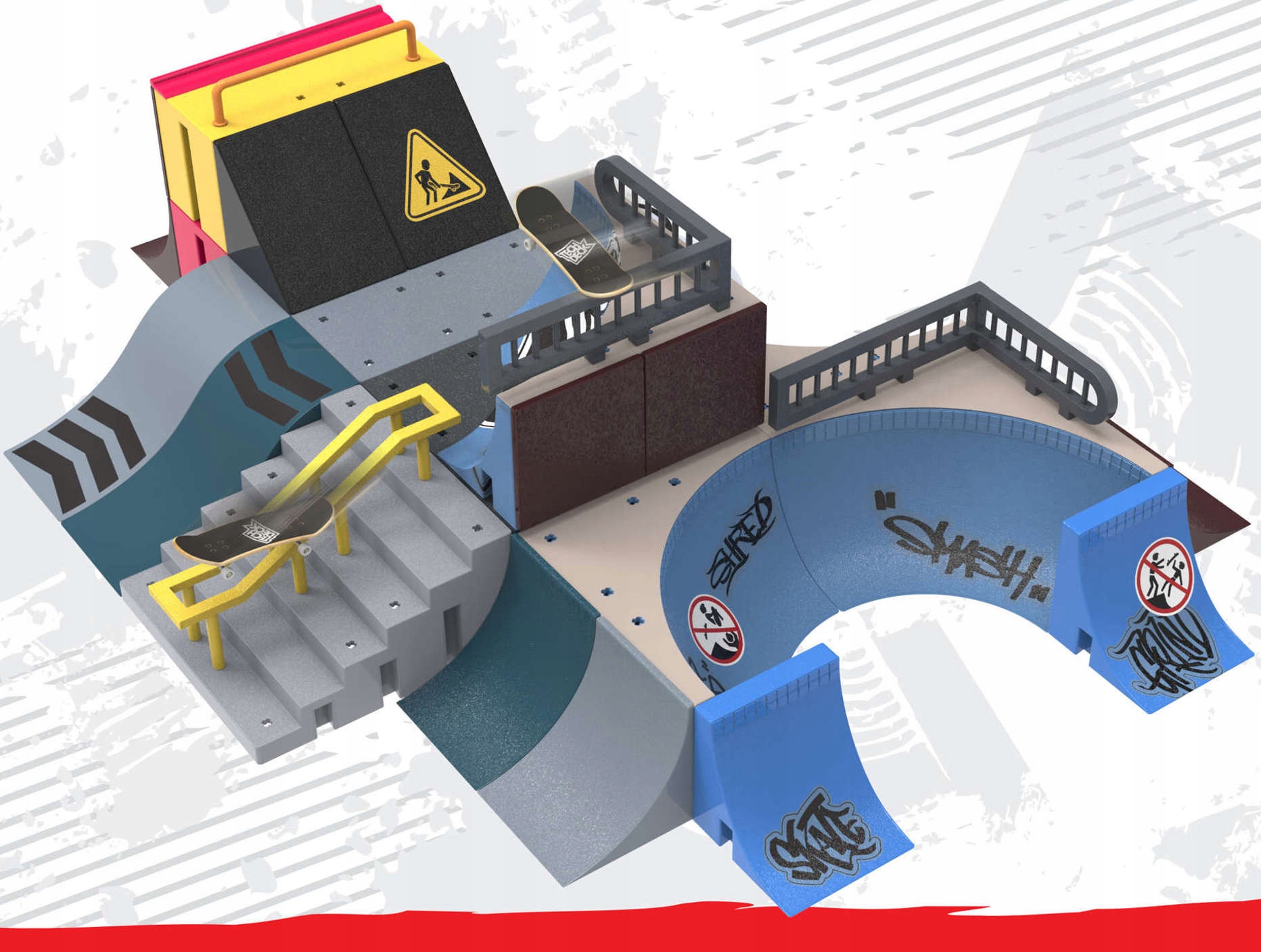 Набор состоит из три высоких пандуса с перилами, благодаря которым вы сможете отточить свои трюки. Входящие в комплект скейтборды доставят массу удовольствия. Дополнительно они тренируют координацию наших пальцев. Скейтборды доставят много часов удовольствия, а освоение новых трюков побудит вас продолжать веселиться и соревноваться с друзьями.