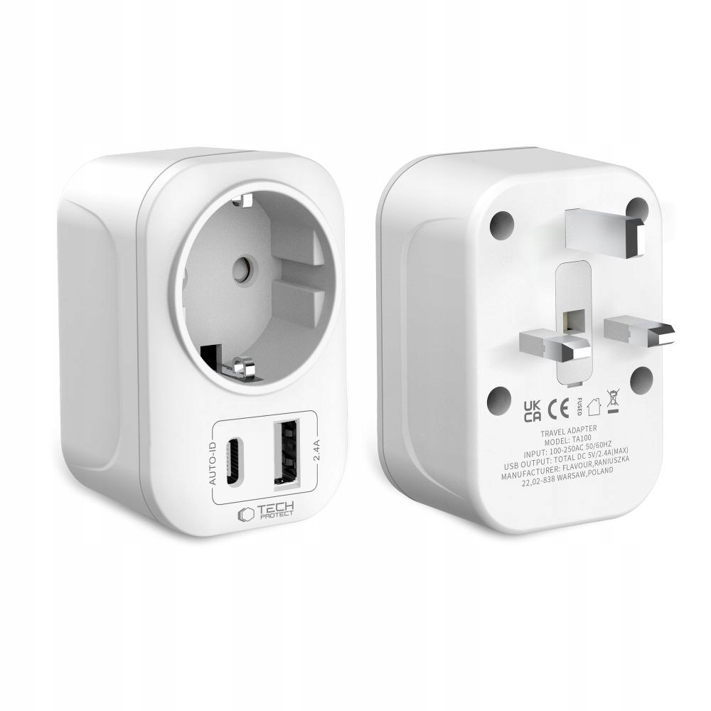 TECH-PROTECT TA100 ПУТЕШЕСТВЕННЫЙ АДАПТЕР ИЗ Великобритании В ЕС БЕЛЫЙ