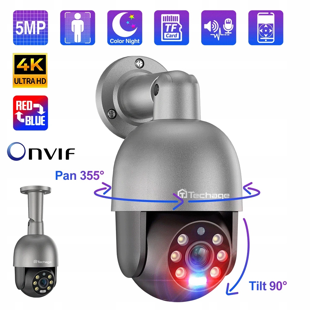 Techage Kamera IP 5MP PoE PTZ Onvif Grafitowa