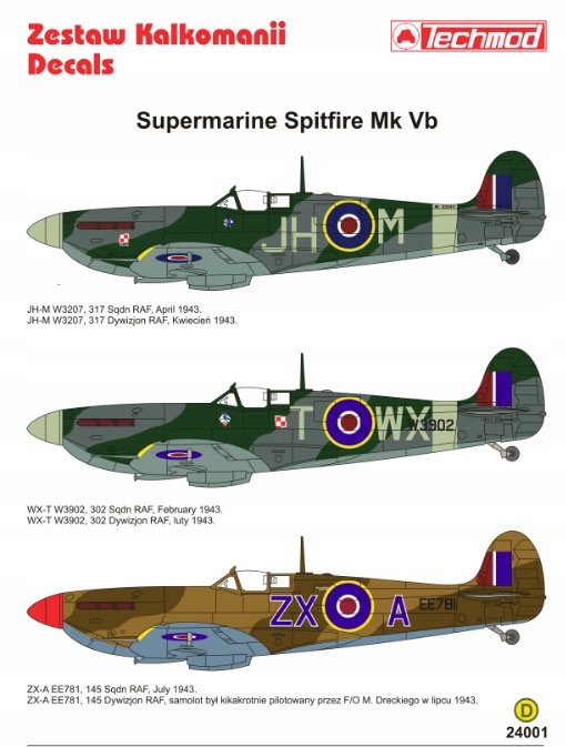 Spitfire VB, JH-M W3207, 317 SQN RAF (польский), апрель 1943 г.