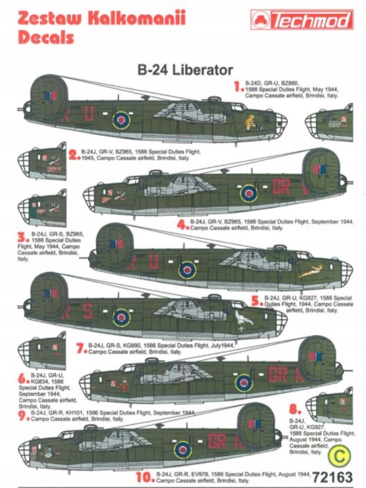- B-24D, GR-U, BZ86, 1586 отдельная эскадрилья до специальной Задачи, май 1944 г., аэродром Кампо-Кассале, Бриндизи, Италия;