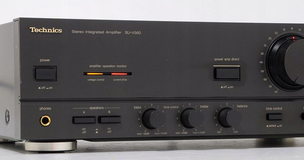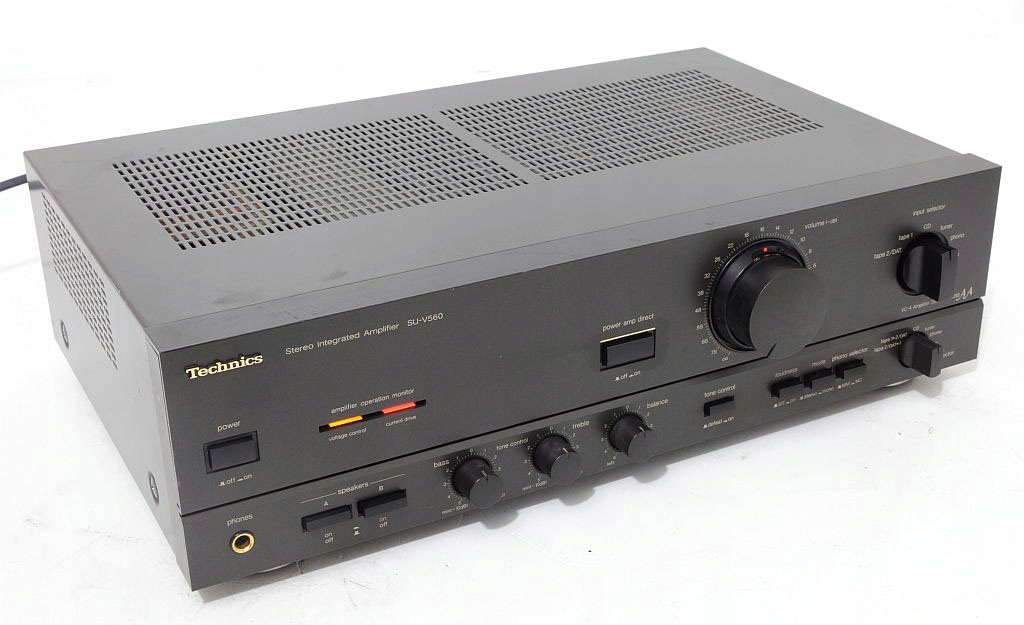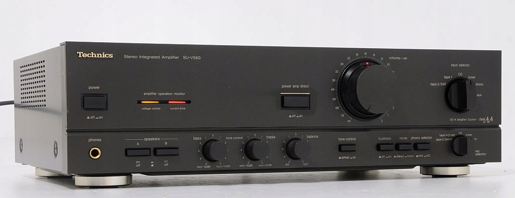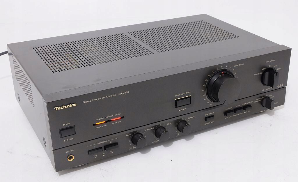 Представитель старой доброй школы Technics, чудовищное «каре» из одной из лучших линеек этого бренда. Сравнивать предлагаемый здесь SU-V560 с представителями двух последних серий продукции (даже разделенных: усилитель мощности - предусилитель) от Technics прямо-таки профанно - приглашаю вас на конфронтацию, вы можете убедиться сами... Звук - откровение - в эпоху выпускаемых ныне бюджетных усилителей его следовало бы назвать аудиофильским. На мой взгляд, параметры, предлагаемые SU-V560, должны быть стандартными для текущих продуктов магазина в диапазоне 1500-2000 злотых, но, к сожалению, по маркетинговым причинам это невозможно (и так было уже много лет). Устройство изготовлено из высококачественных, фирменных, долговечных компонентов, среди которых: мощный усилитель мощности класса АА (+ отличная защита от коротких замыканий, размыканий...), фирменный трансформатор Technics OFC (бескислородная медь), фирменные конденсаторы Technics (Hi-Speed). Следует также упомянуть потенциометры ALPS.