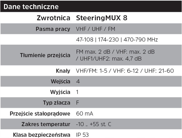 VERTICALMUX 8a — современная версия активной антенны с усилителем (8a). Он предназначен для приема цифрового наземного телевидения DVB-T/T2 на большом расстоянии в диапазоне УКВ (MUX8). Эффективный источник питания, предварительно собранные элементы, качественный алюминий и точная обработка обеспечивают надежную работу антенны в течение многих лет – даже в сложных погодных условиях. В комплект также входит кроссовер STEERINGMUX 8!!!!!!!!!!!!