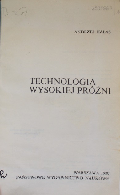 Technologia wysokiej próżni Andrzej Hałas