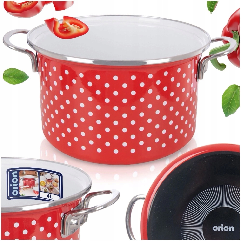Эмалированный горшок содержится в стиле ретро. Изготовленный из твердых материалов, он очень удобен и удобен. Горшок будет работать для приготовления пищи и тушеного мяча, мы будем готовить в нем тип блюд, супов или соусов. Также полезно для подачи блюд непосредственно на столе. Эналированные сосуды могут иметь недостатки производства, которые являются естественными для такого типа блюд: выпуклости, асимметричных принтов и т. Д. Оригинальный продукт чешского бренда Orion. был произведен в соответствии с европейскими стандартами.
