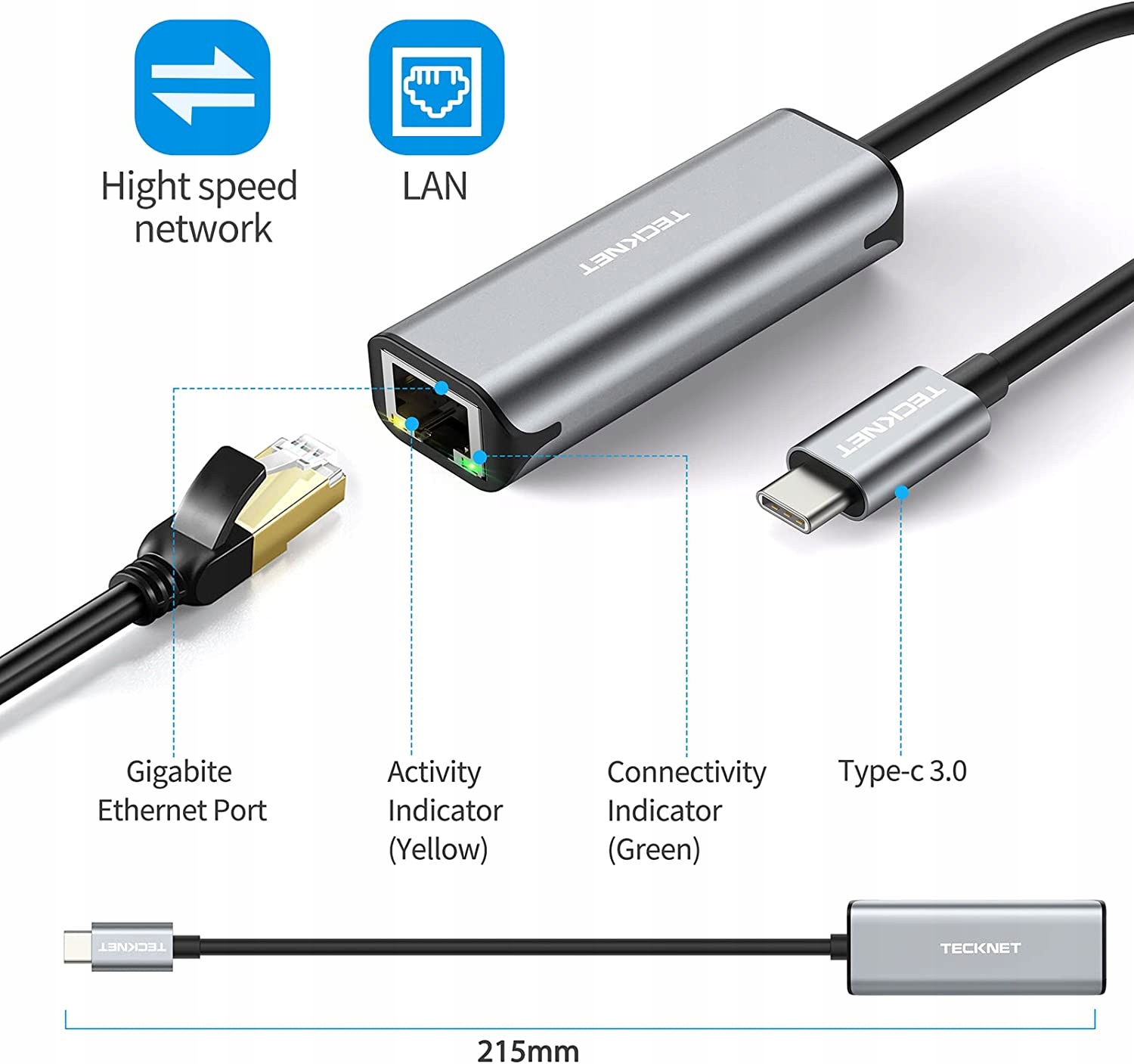 Tecknet USB-C Адаптер на Ethernet RJ45 1000 Мбит/с