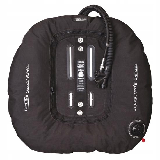 Мешок имеет форму неправильного круга, что обеспечивает эффективный поток газа в любом направлении и, таким образом, сохраняет выбранное положение под водой. Увеличение ширины сумки и специальная вставка, вшитая в контур сумки, обеспечивают хорошую боковую поддержку двойника при погружениях с дополнительными баллонами. Кроме того, эта вставка увеличила вместительность сумки, не увеличивая ее контуры - получилась маленькая сумка с большой вместимостью. Широкий ремень в нижней части сумки позволяет использовать эту дополнительную емкость, обеспечивая дайверу «высокое» положение на поверхности воды. Также мы сохраняем устойчивое положение под водой благодаря легкому выделению газа. Задний клапан расположен «интуитивно». Когда мы тянемся к цистерне рукой, мы просто ударяем по ней. Шланг подкачки расположен по центру, так что разъем для шланга находится точно между цилиндрами, что позволяет сбрасывать газ вместе с подкачкой без необходимости сильно наклоняться вверх. Сумка очень узкая в верхней части, что дает практически неограниченные возможности по настройке шлангов и регуляторов и, что не менее важно, свободный доступ к клапанам. Положение сумки относительно комплекта и пластины можно определить, выбрав одну из двух пар отверстий для винтов крепления сумки к баллонам.