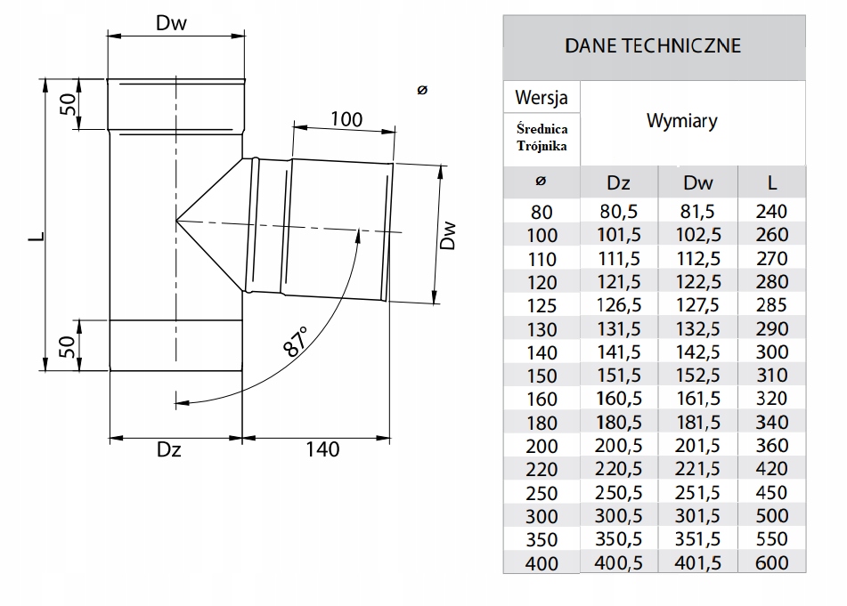 Tee 90 -й Fi 180 тепло -устойчивый патрон из нержавеющей стали. Пеллетный угольный дымоход 1,0 мм