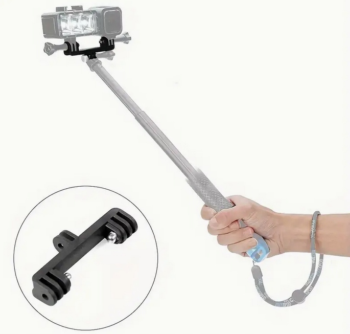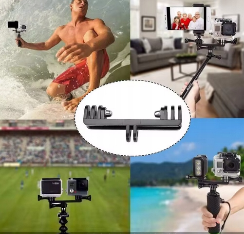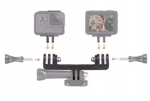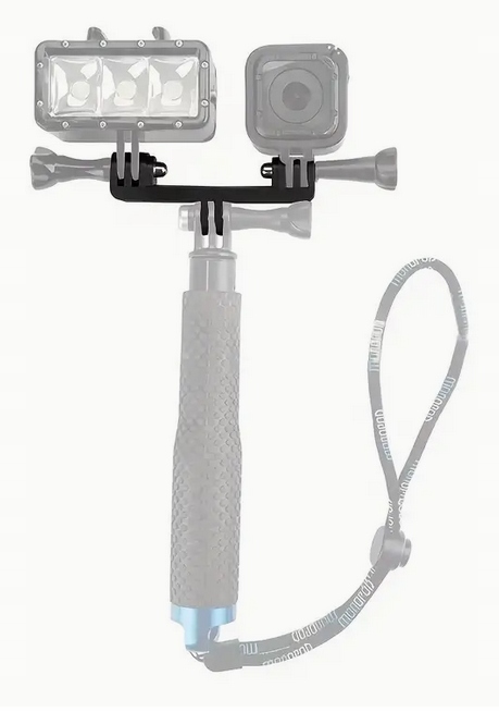 ✅ Держатель позволяет одновременно установить две спортивные камеры или комбинацию спортивной камеры и светодиодной лампы или другого аксессуара,