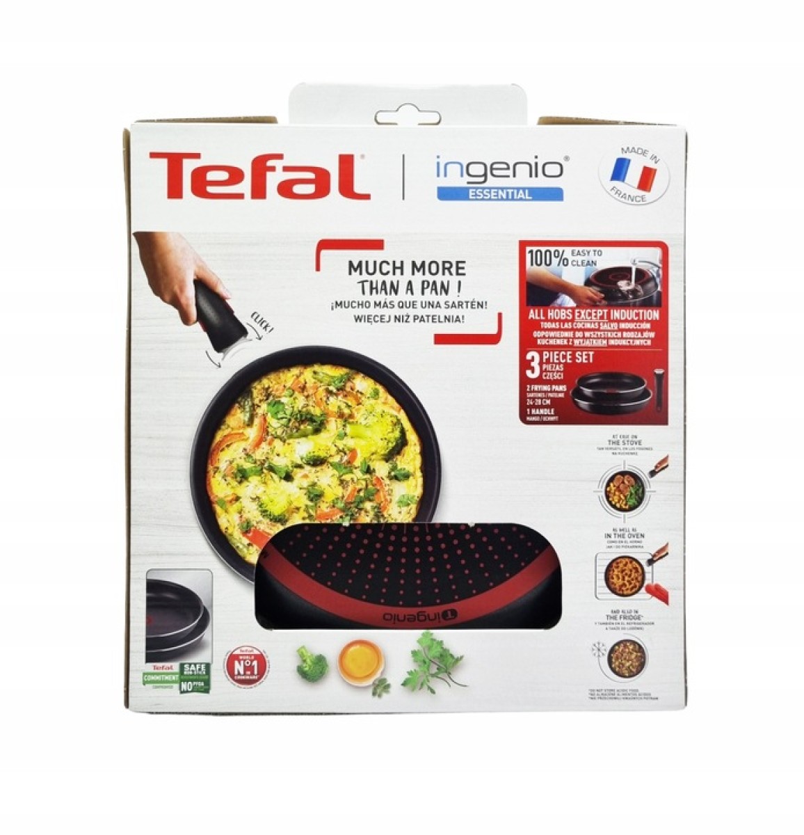 Готовь как профессионал! Универсальная ингену -основная кастрюля со съемной ручкой идеально подходит для многих блюд и не ограничивает ваше творчество. Одним щелчком вы можете легко снять блюдо из горелки и положить в духовку или подавать в столе. Кроме того, Essenio Essential Set убеждает его чрезвычайно экономичное пространство, благодаря тому, что можно легко сложить сковороды и блюдца. Основной набор дополнительно оснащен покрытием для предотвращения предотвращения прилипания Tefal Powerglide, чтобы предотвратить прилипание к сковороде и облегчить очистку. Практический индикатор температуры термоплаты превращает цвет в равномерный темно-красный, когда сковорода оптимально горячая и готова жарить, благодаря этой вкусной блюдах дома в домашних условиях становится детской игрой! Решение для универсальной кухонной посуды