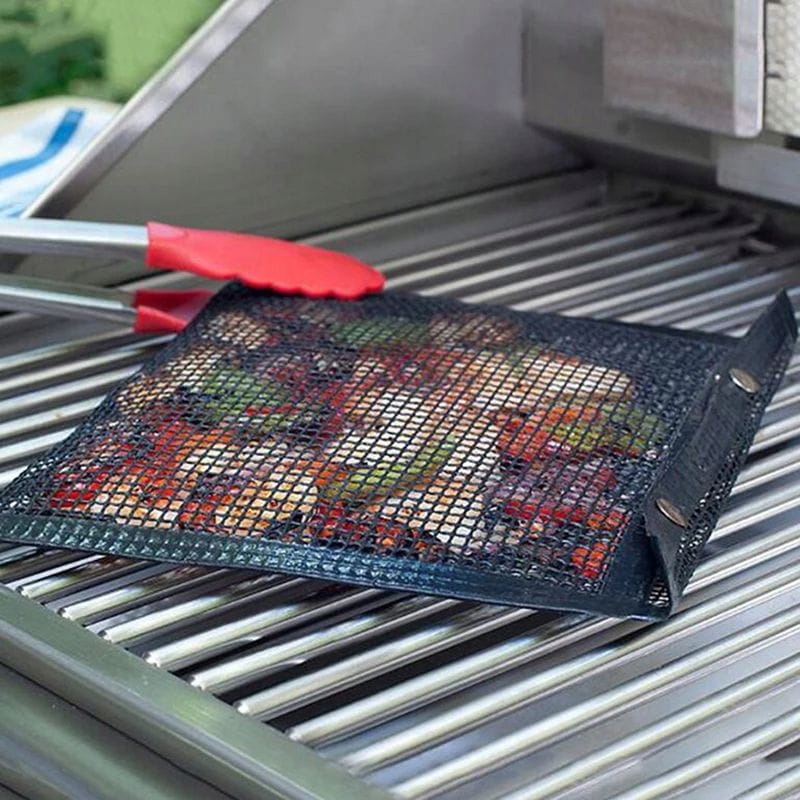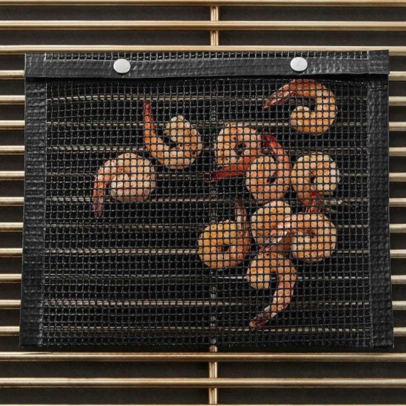 Тефлоновая оболочка в форме сетки предотвращает падение небольших блюд с гриля. Изготовлен из материалов высочайшего качества, нетоксичных и устойчивых к высоким температурам. Сетчатая структура позволяет воздуху свободно циркулировать, благодаря чему дым от гриля придает блюдам идеальный вкус. Это позволяет легко очистить пищу от лишнего жира или маринада.