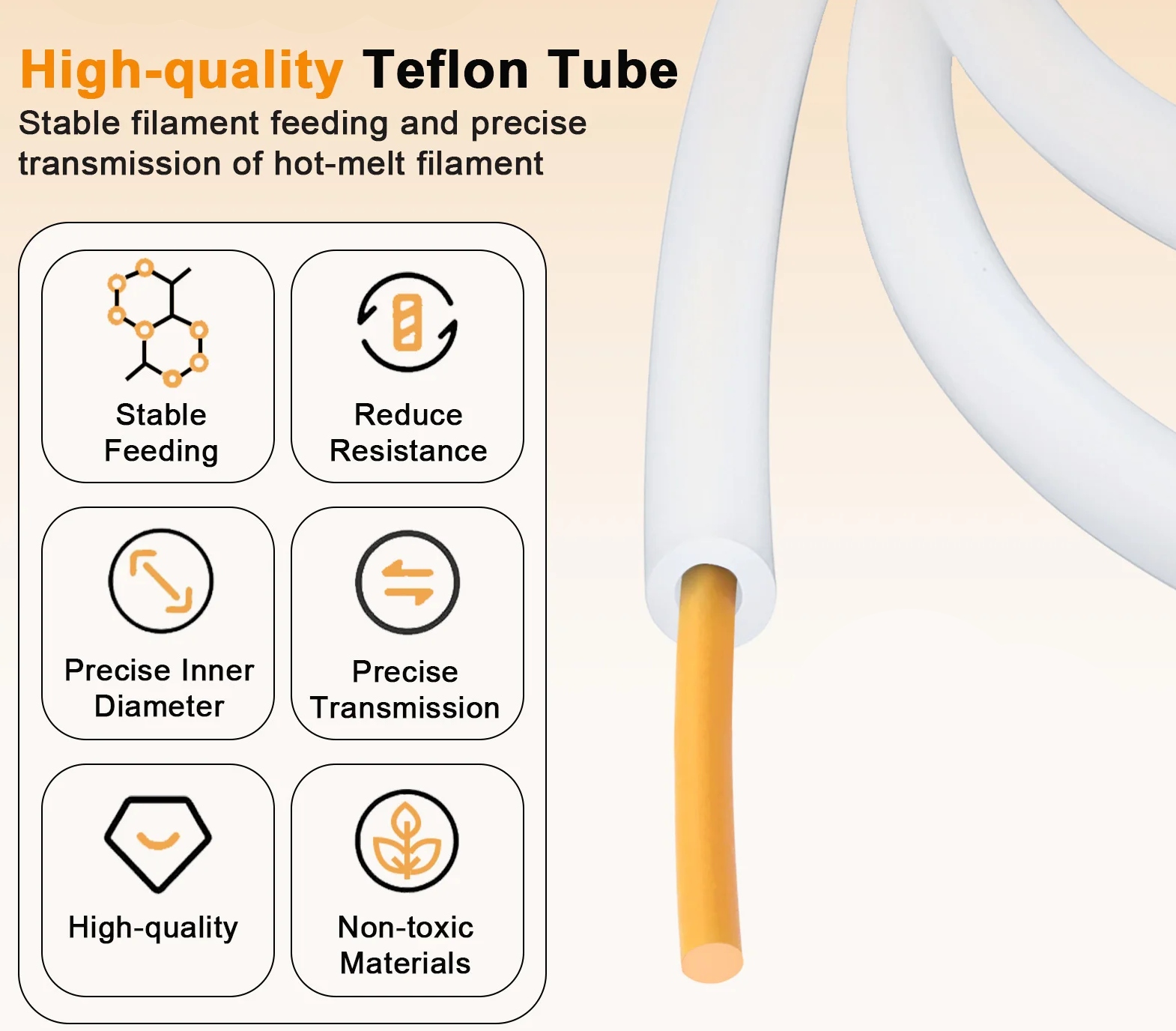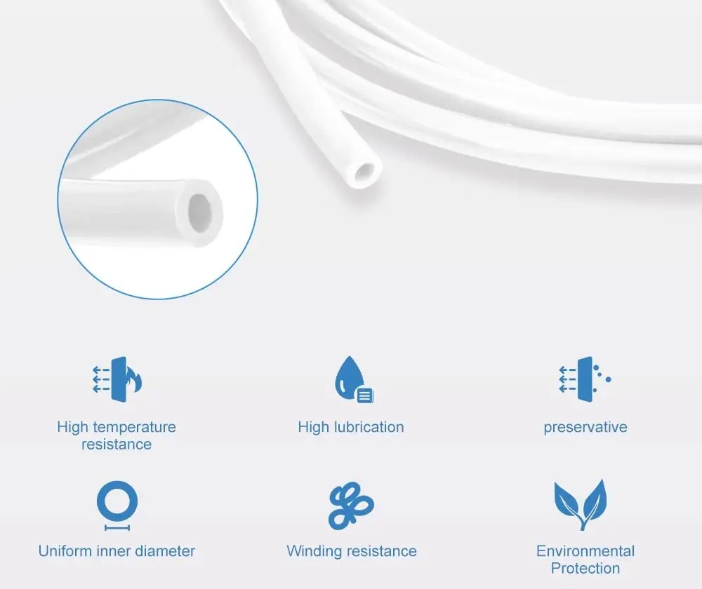 Я предлагаю трубку, изготовленную из ptfe (реального высокотемпературного тефлона) с внешним диаметром 4,0 мм . и внутренний 2,5 мм . Предлагаемые трубки являются «естественными» и не окрашены, благодаря которого они сохраняют свойства, ожидаемые пользователем (красители не оказывают положительного влияния на структурные свойства тефлона).