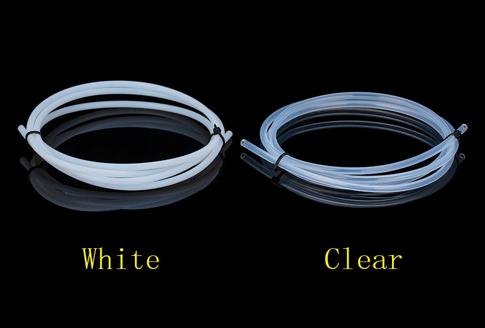 Трубка из ПТФЭ (настоящего высокотемпературного тефлона) с внешним диаметром 4,0 мм. и внутренний 2,0 мм. Предлагаемые тубы дополнительно обрабатываются в заводских условиях для получения более ПРОЗРАЧНОЙ (прозрачной) структуры, что влияет на видимость конца нити, движущейся внутрь.