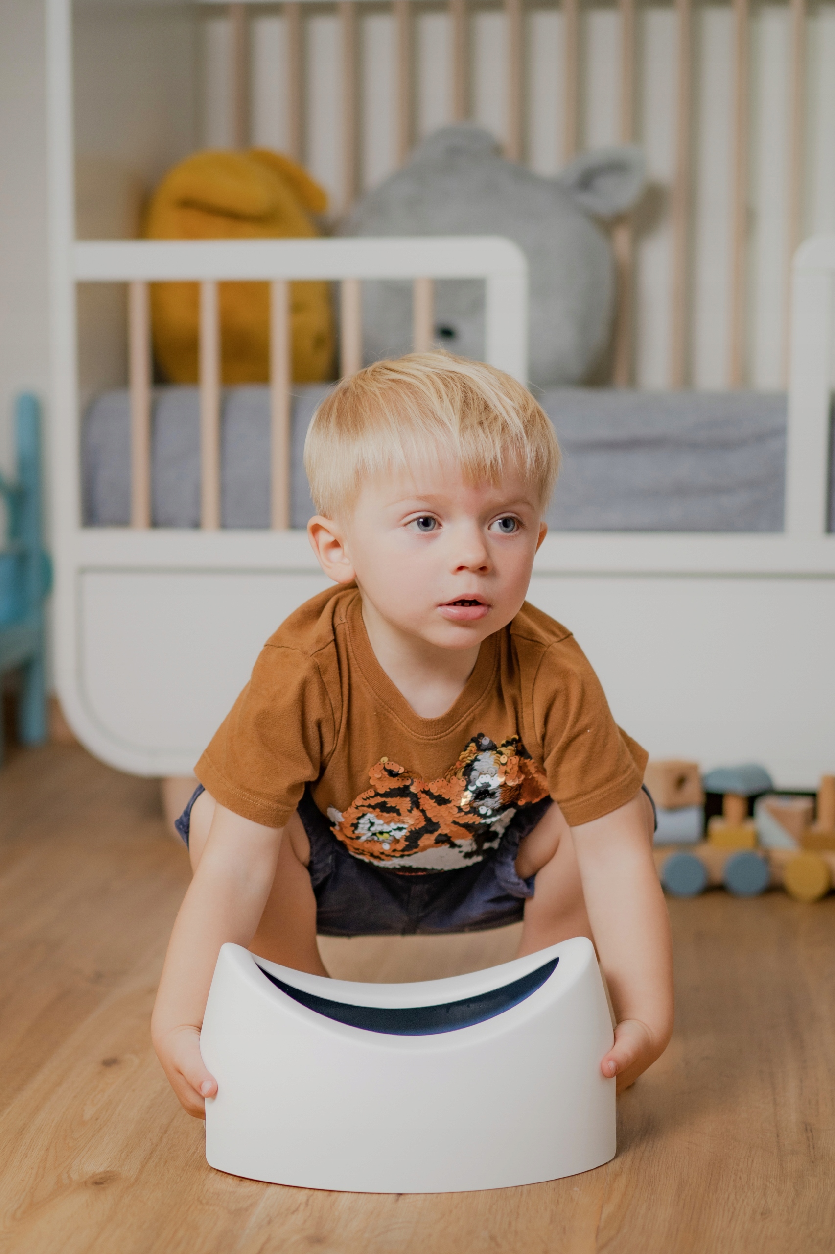 Специально разработанная симметричная и эргономичная форма горшка Teggi является результатом сотрудничества физиотерапевтов, родителей и дизайнеров. Его анатомическая форма и размер идеально адаптированы к строению тела ребенка. Благодаря высоте сиденья детям легче садиться и вставать с горшка. Съемная внутренняя часть горшка облегчает чистку. Нижний край имеет нескользящее покрытие, что обеспечивает устойчивость горшка на полу.