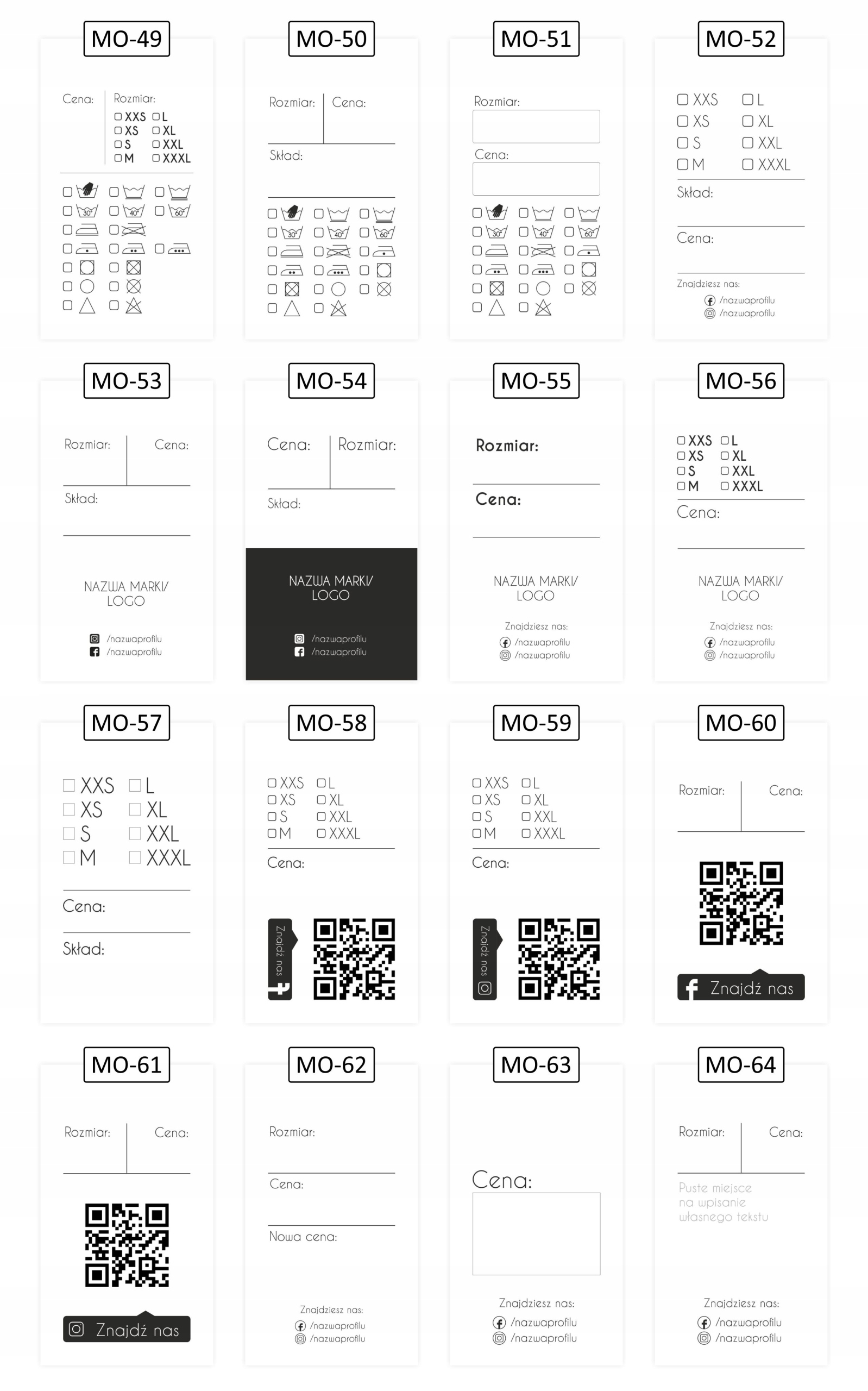 - Вы не нашли правильный шаблон для себя? Zapraszamy na naszą aukcję na której możesz zakupić przygotowanie indywidualnego projektu metki zgodnie z twaimi potrzebami, dopasowany do twojej-marki! Aukcji nie wykonujemy odwzorowań państwa dotychczasowych projektów, projektów indywidualnych itp. Aby Skorzystać Эта услуга просит использовать наши аукционы относительно подготовки отдельного проекта.