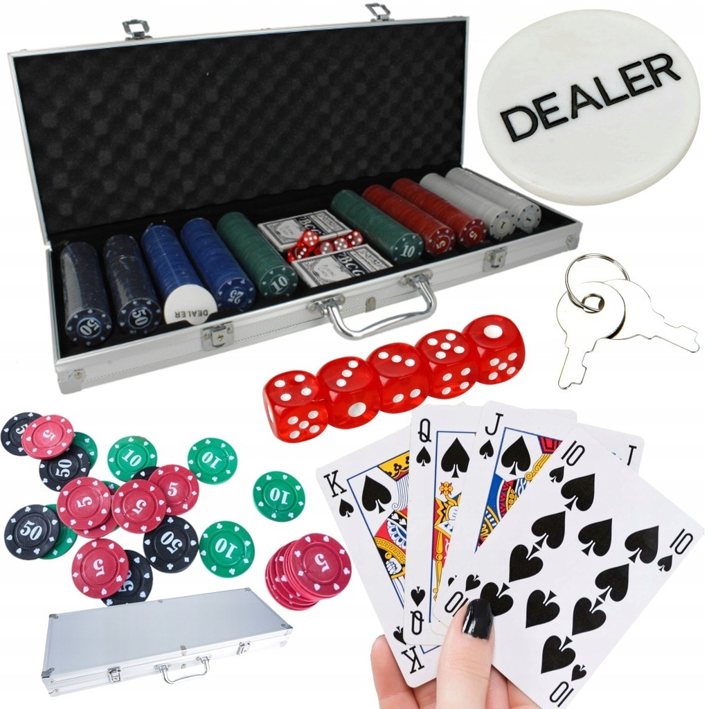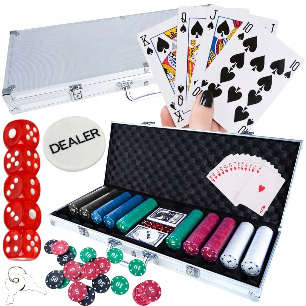 Фантастическая полная игра в Texas Hold'em Poker и другие карточные игры. Набор идеально подходит для игры в покер и другие игры, например, Кости, рулетка или черный Джек. Это чрезвычайно практично, его легко двигаться и позволит вам сохранить заказ в ваших покерных аксессуарах. Металлический чемодан содержит: две палубы карт, 500 жетонов с конфессиями, 5 костей и токен: дилер.