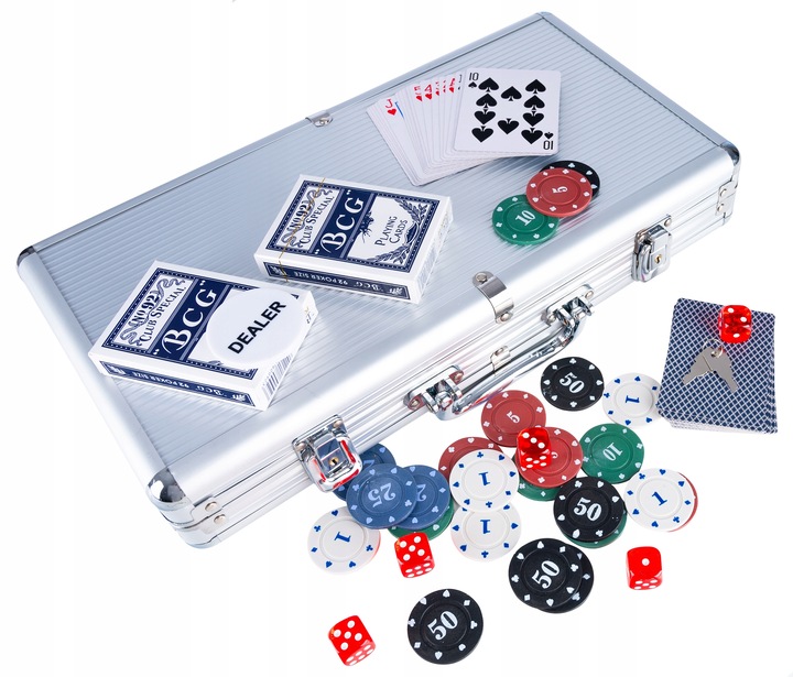 Профессиональный, надежно сделанный набор для игры в покер или кости. Включает две колоды карт, набор игральных костей и 300 игровых жетонов, упакованных в элегантный чемодан. В наборе есть все необходимое для игры, как в настоящем казино.