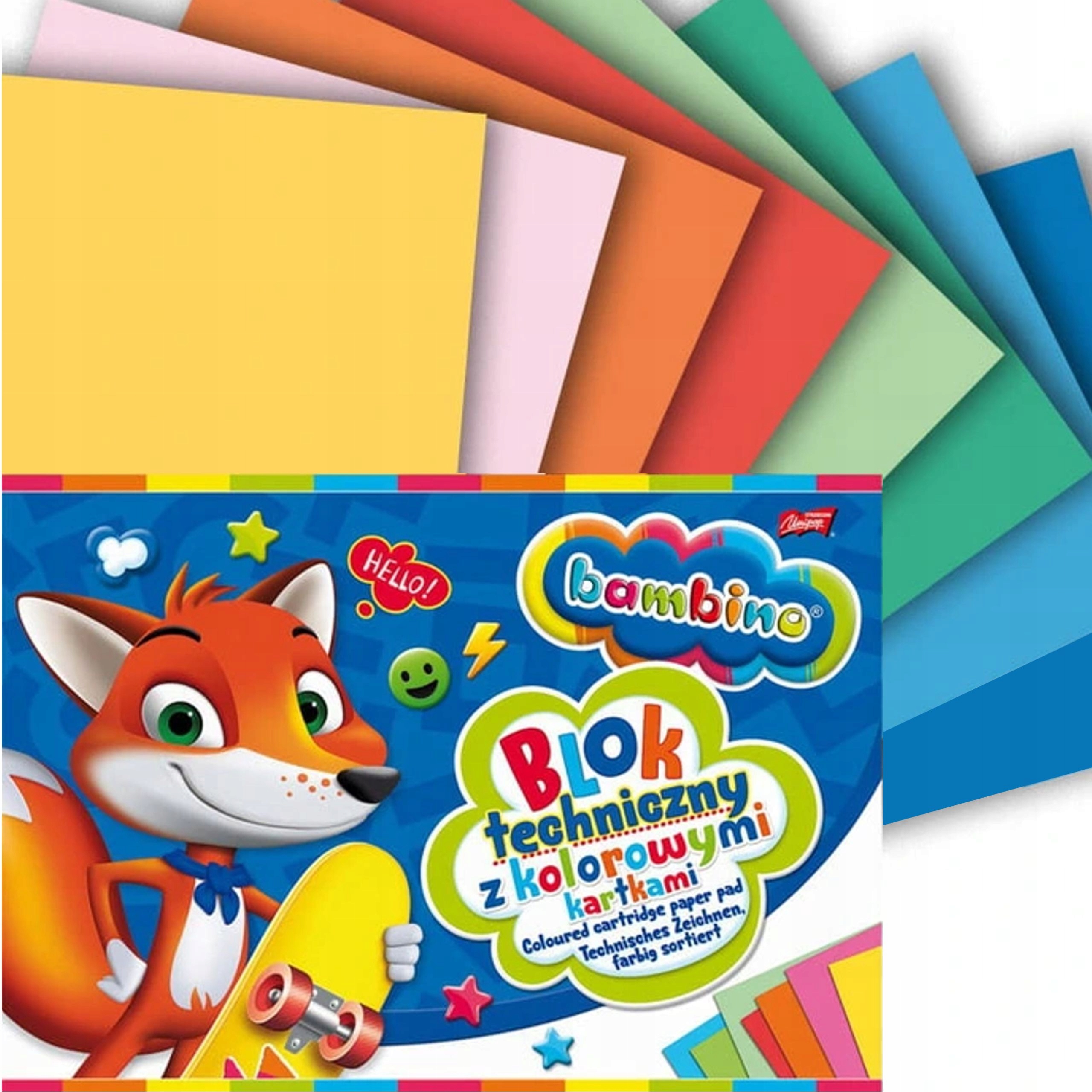 - Бамбино Технический блок содержит 10 листов цветного мела плотностью 160 г/м2