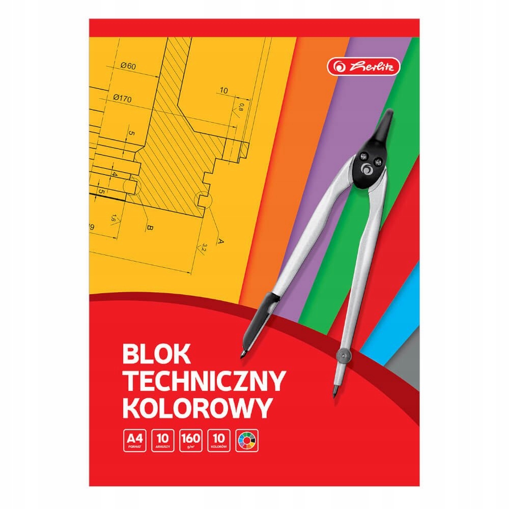 Цветной технический блок А4 - 10 листов, 160 г - Herlitz - цветной в массе