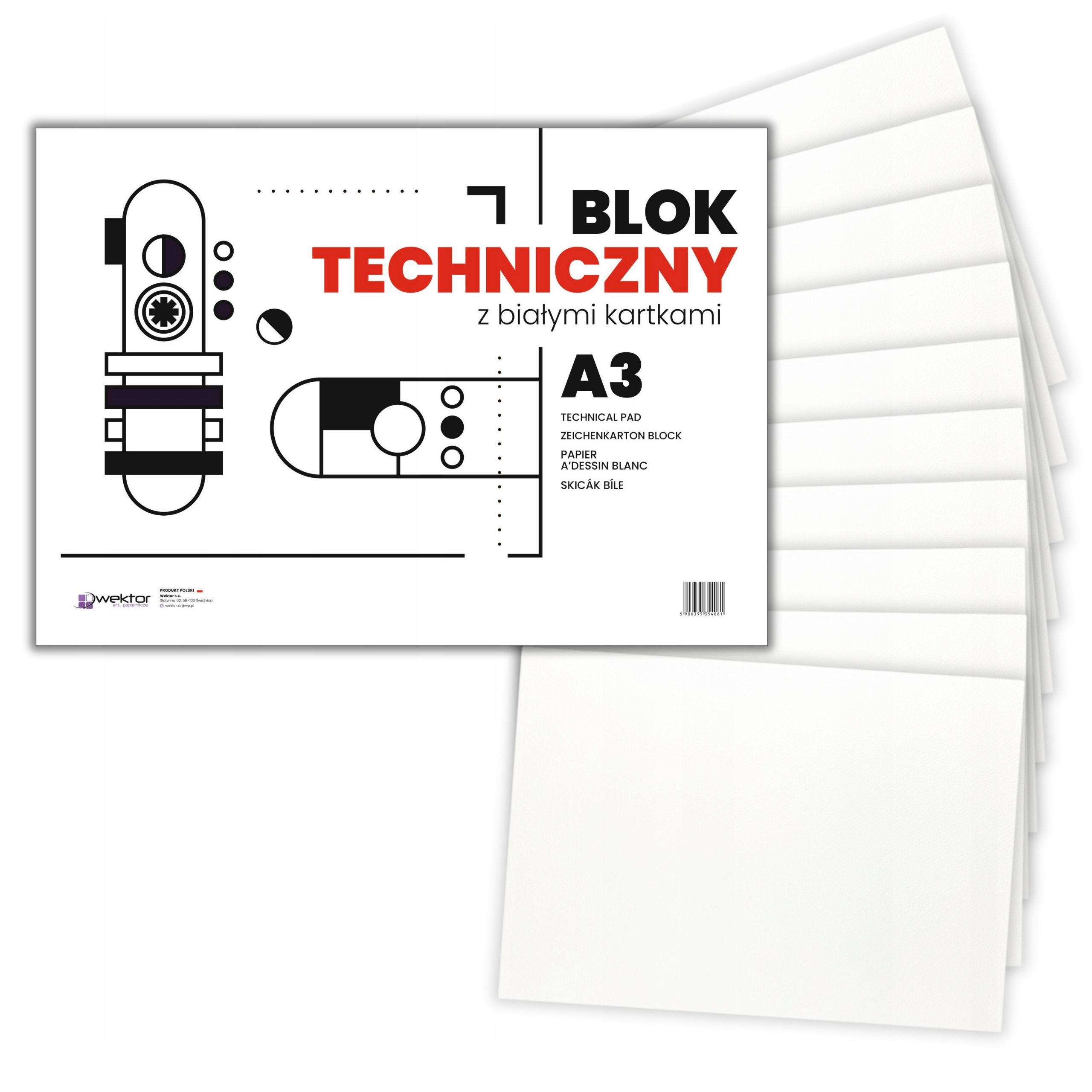 ТЕХНИЧЕСКИЙ БЛОК БЕЛЫЙ А3 ШКОЛА 10 ЛИСТОВ 160г/м2 ДЛЯ БУМАГИ ДЛЯ ЧЕРТЕЖА