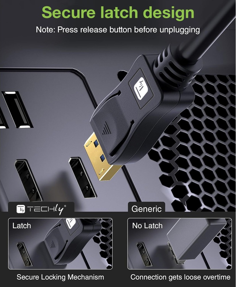 ➡️ Заглушки с защелками обеспечивают безопасное и стабильное подключение кабеля к порту DP