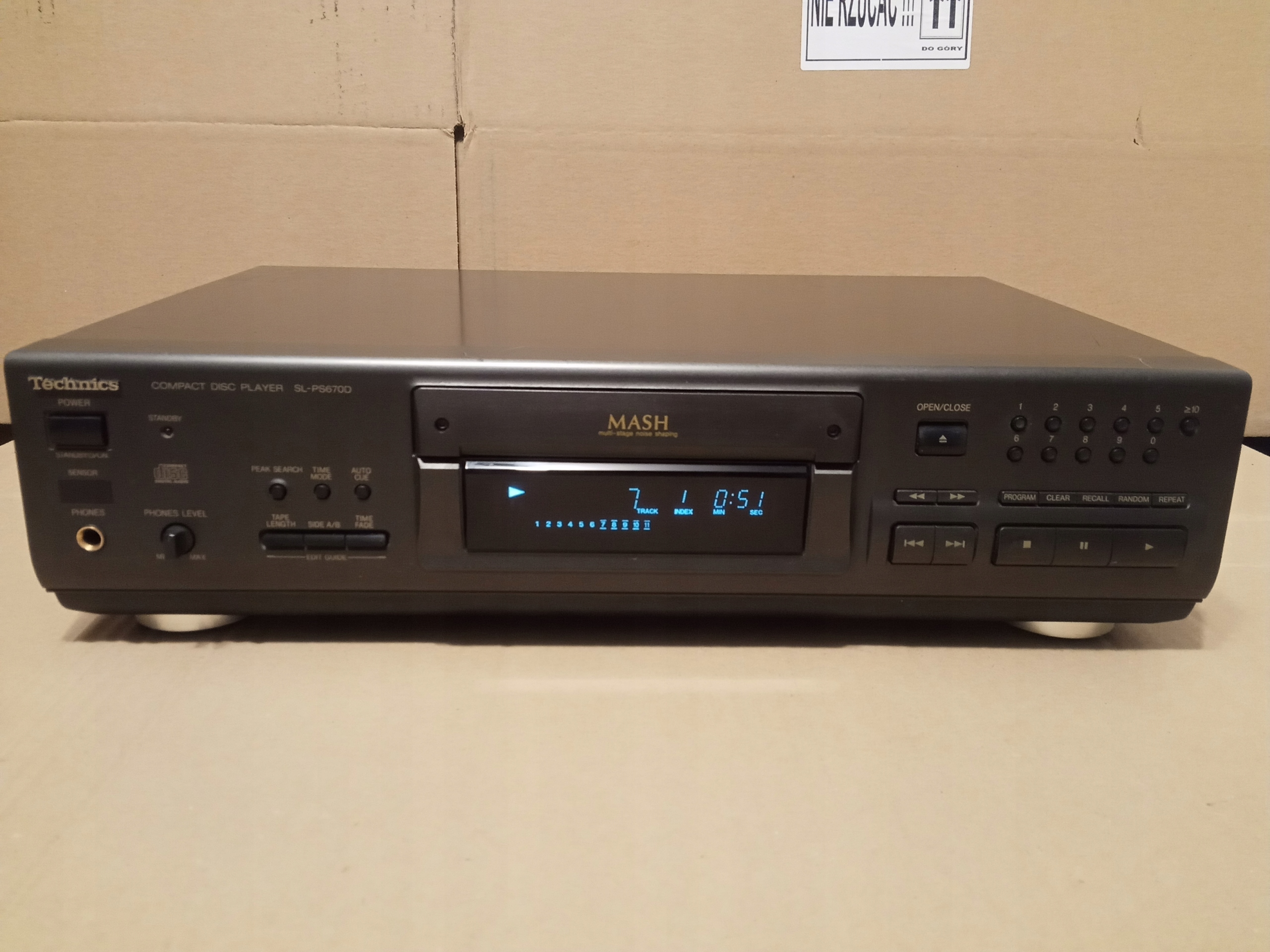 CD Player: Technics SL-PS670D. Используется и технически эффективно, он также считывает записанные диски. Буровые установки на верхней обложке! Полем Текущий кабель включен без пульта дистанционного управления. 98db