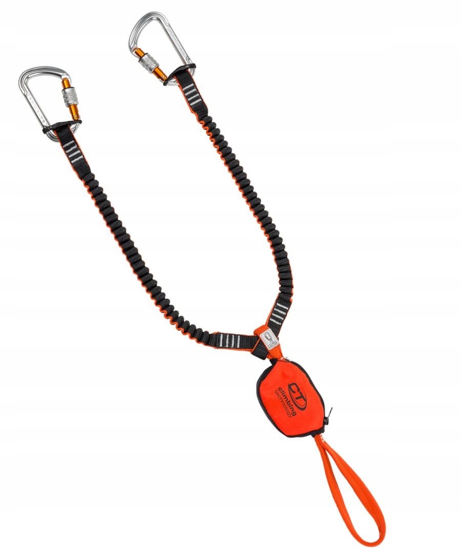 Надежные карабины K-Classic изготовлены из легких сплавов, имеют автоматический замок и систему Catch-Free. Они характеризуются большим просветом и оптимальным размером, что облегчает крепление и позволяет удобно лежать в руке. Чтобы карабины не вращались во время использования, они оснащены резиновым фиксатором, который удерживает их в оптимальном положении. Два гибких рычага обеспечивают быстрое и удобное повторное застегивание. Они независимо соединяются с абсорбером, образуя Y-образную конструкцию. Петля, соединяющая амортизатор с руками, расположена по центру, она также может служить дополнительной точкой страховки во время длительного перерыва для отдыха.