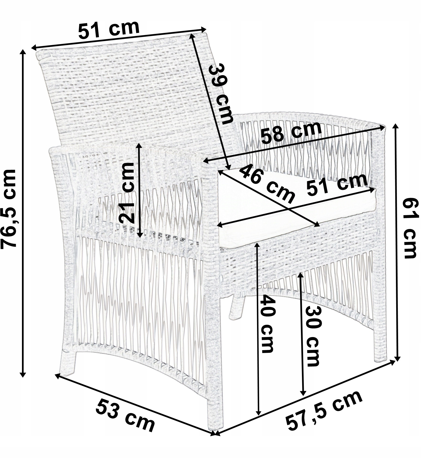- Высота сиденья без подушки: 40 см.