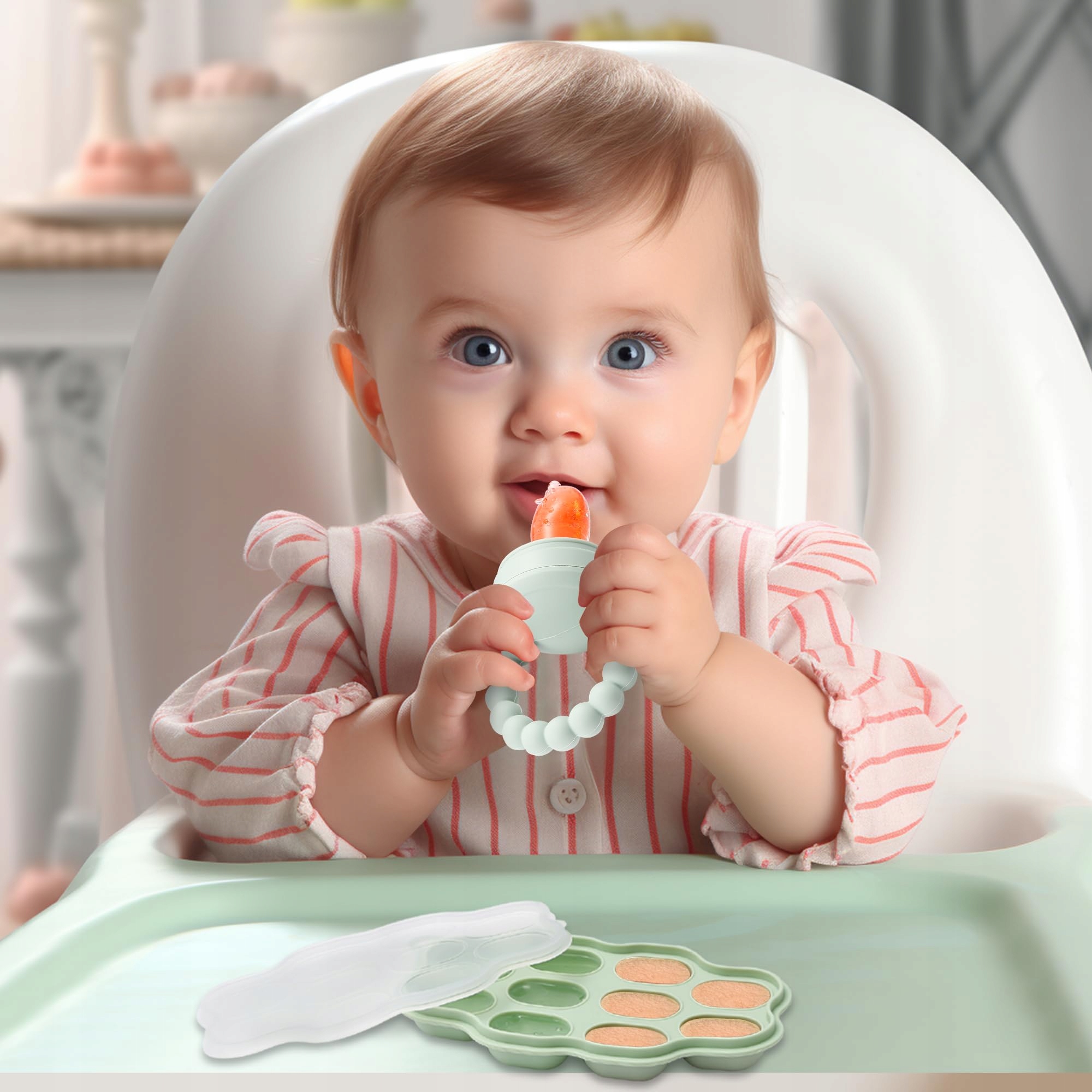Советы: Силиконовый материал фидера заставляет наши контейнеры для фруктовых сосков устойчивы к пятнам. Обесцвечивание обычно происходит только тогда, когда фидер используется с оранжевыми овощами, такими как морковь, тыква и сладкий картофель. Это связано с наличием бета-каротина в красителе.