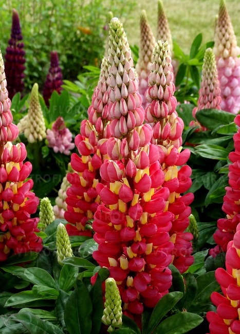Lupine Tequila Flame h1> (Lupinus hybrida) h2> - Цвет цветка: корал -желтый li>